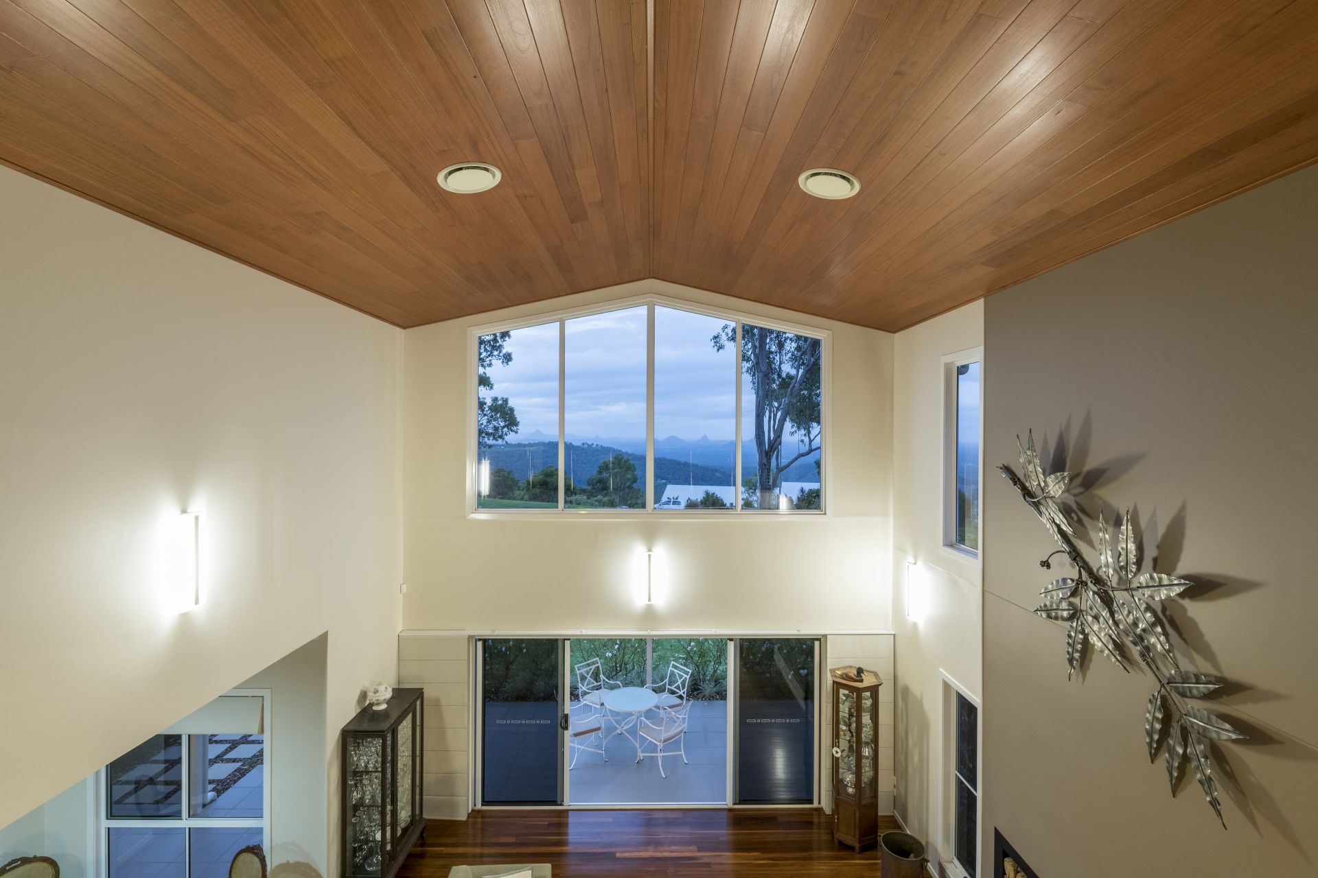- Western red cedar ceiling in the formal lounge, under house workshop & storage