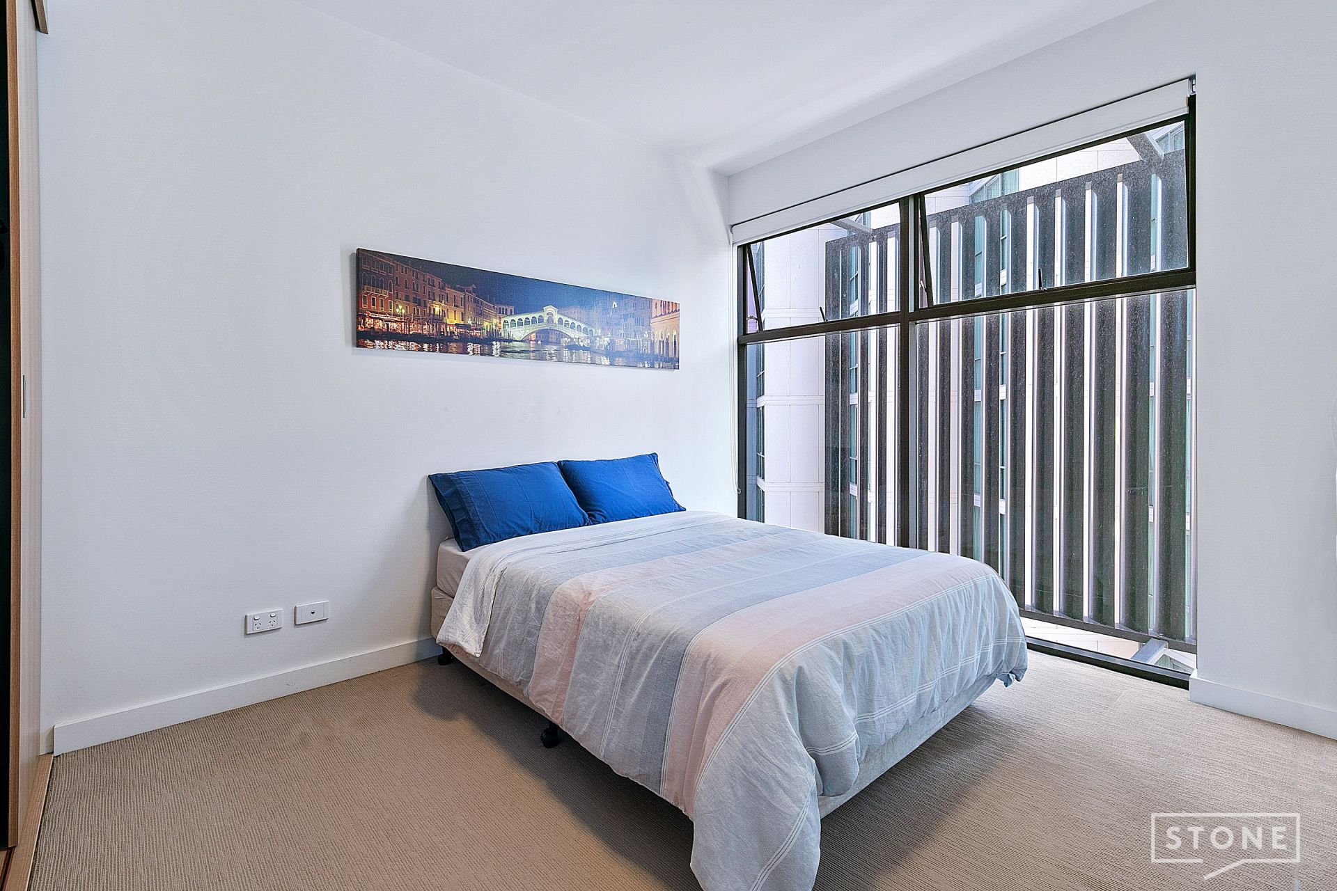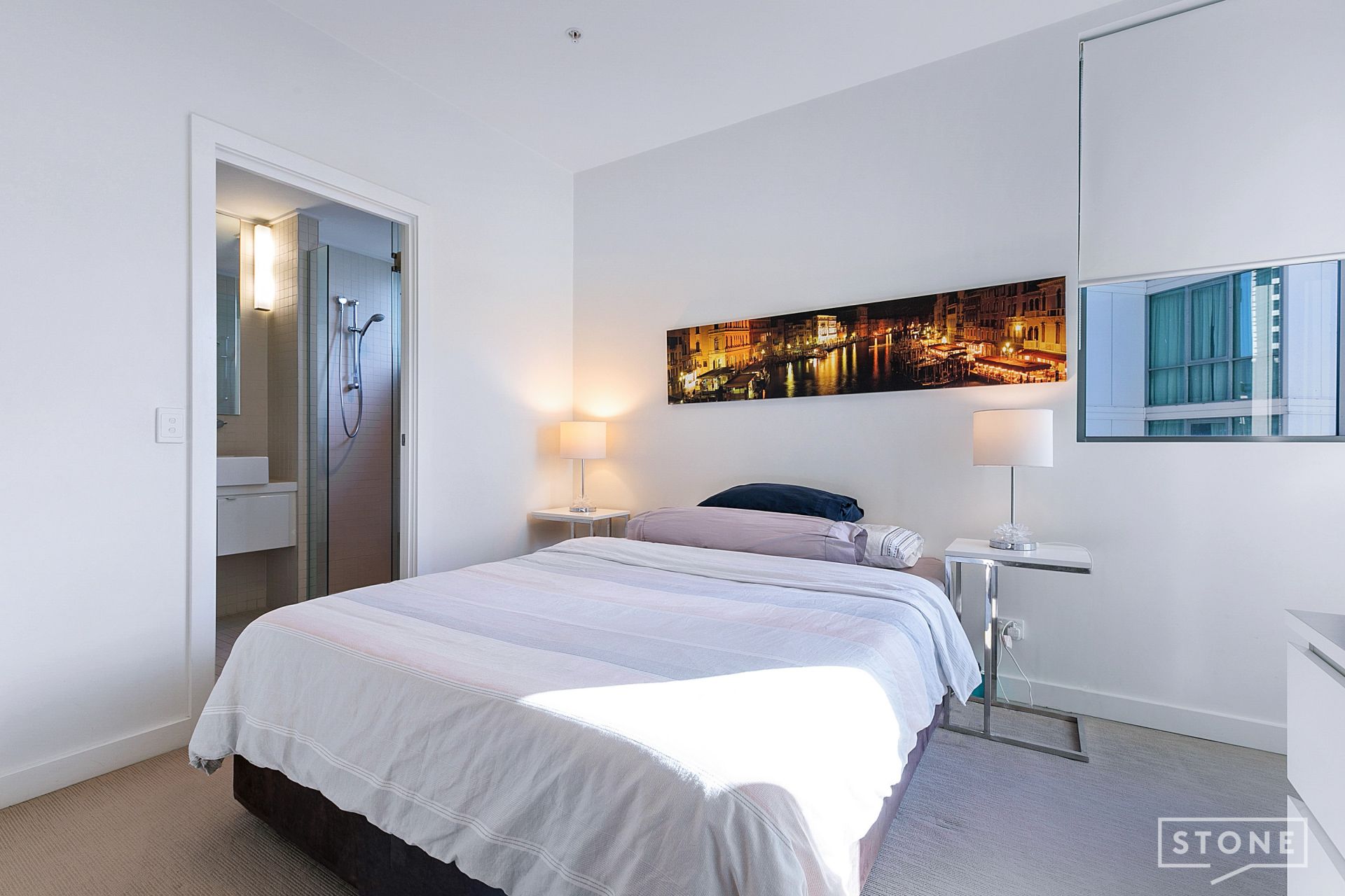 > The master bedroom features extra high ceilings, carpeted floors, built-in robe, roller blinds, ducted air-conditioning, its own ensuite plus access to the private Juliet balcony