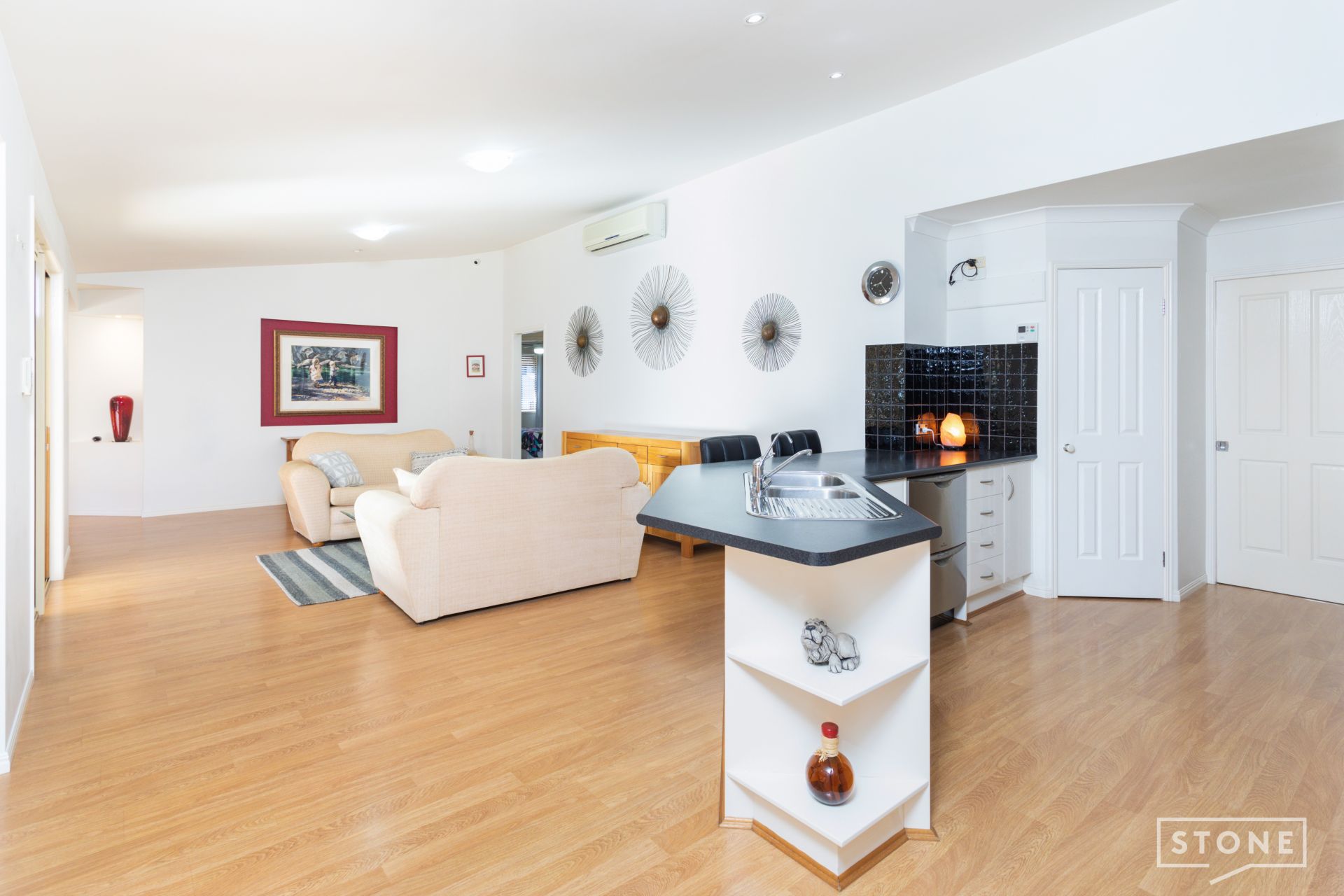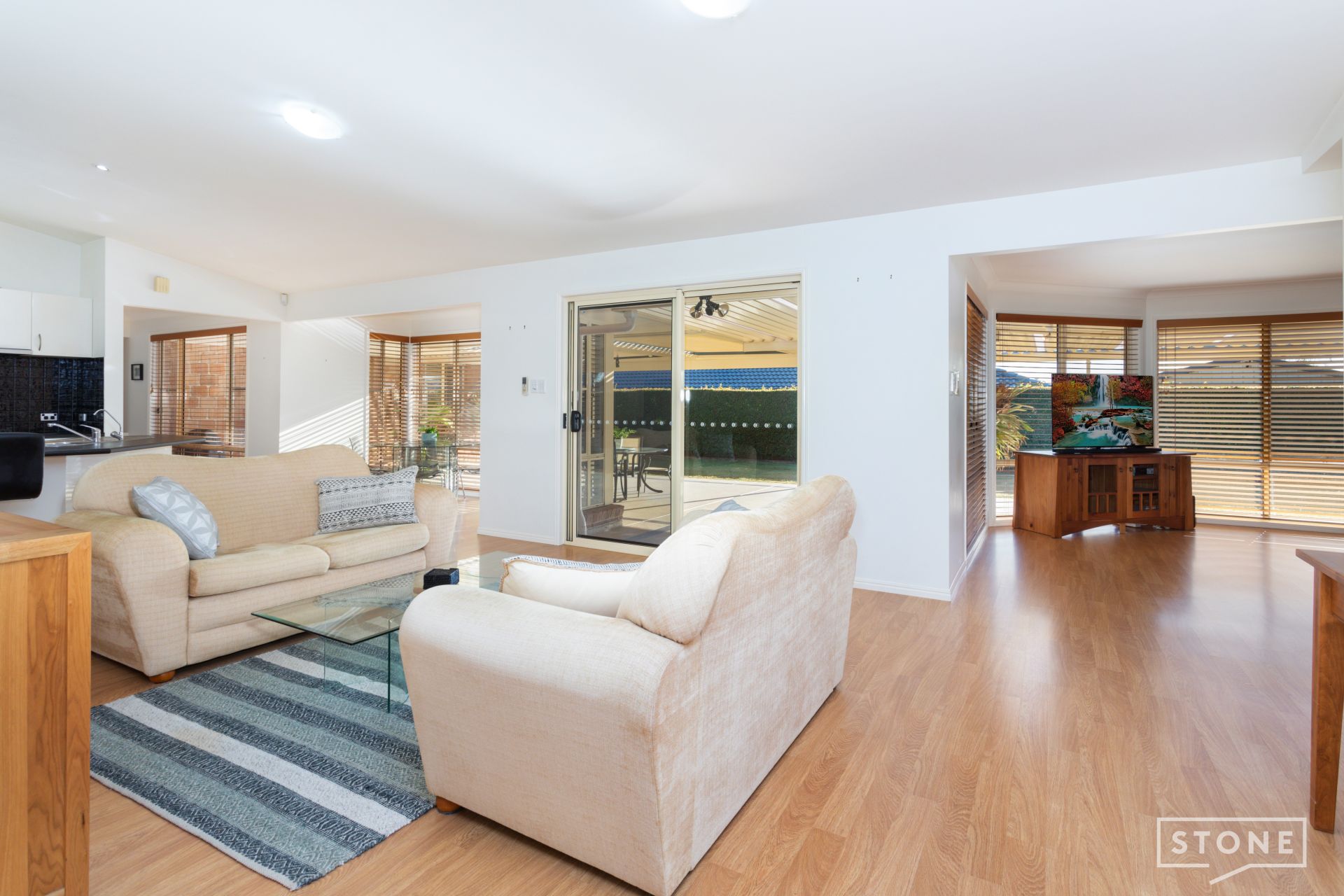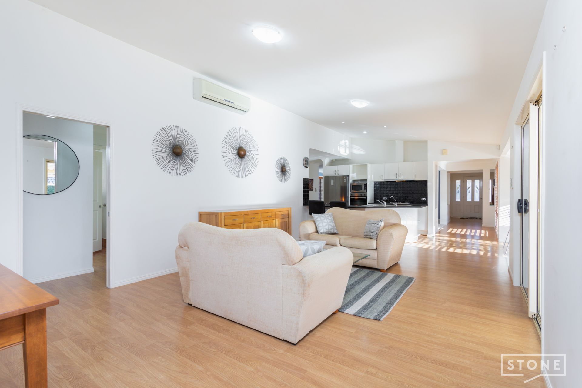 - Three large living spaces all featuring a split-system air-conditioning and carpet in the front living room