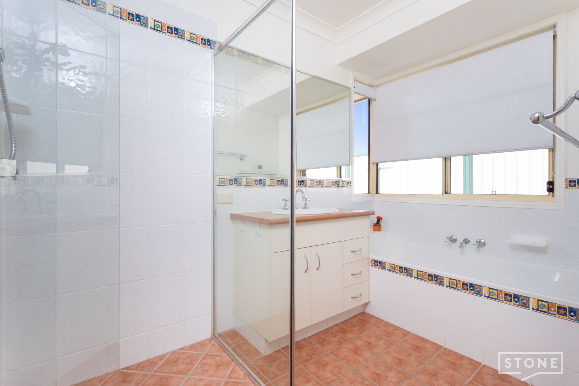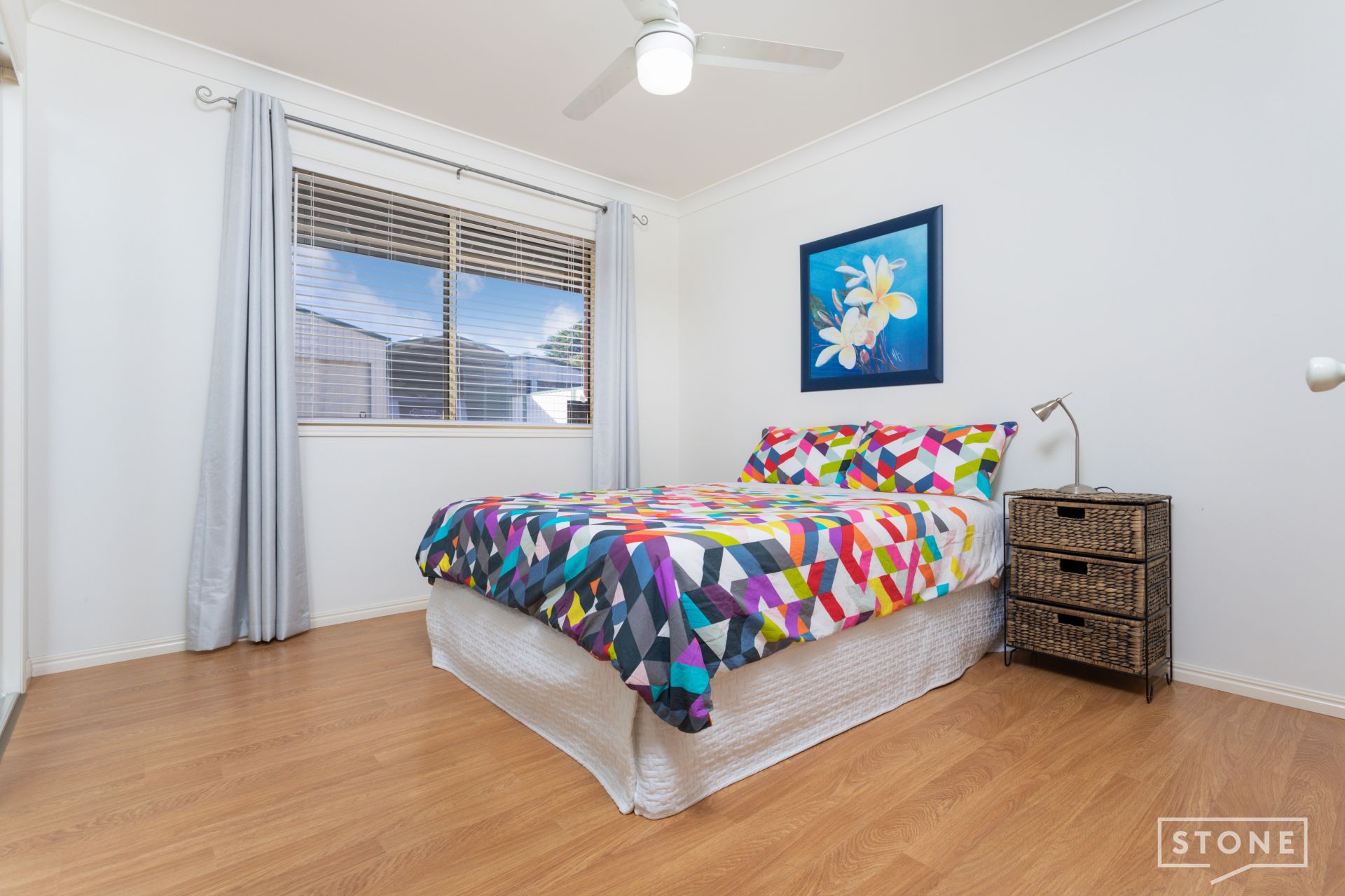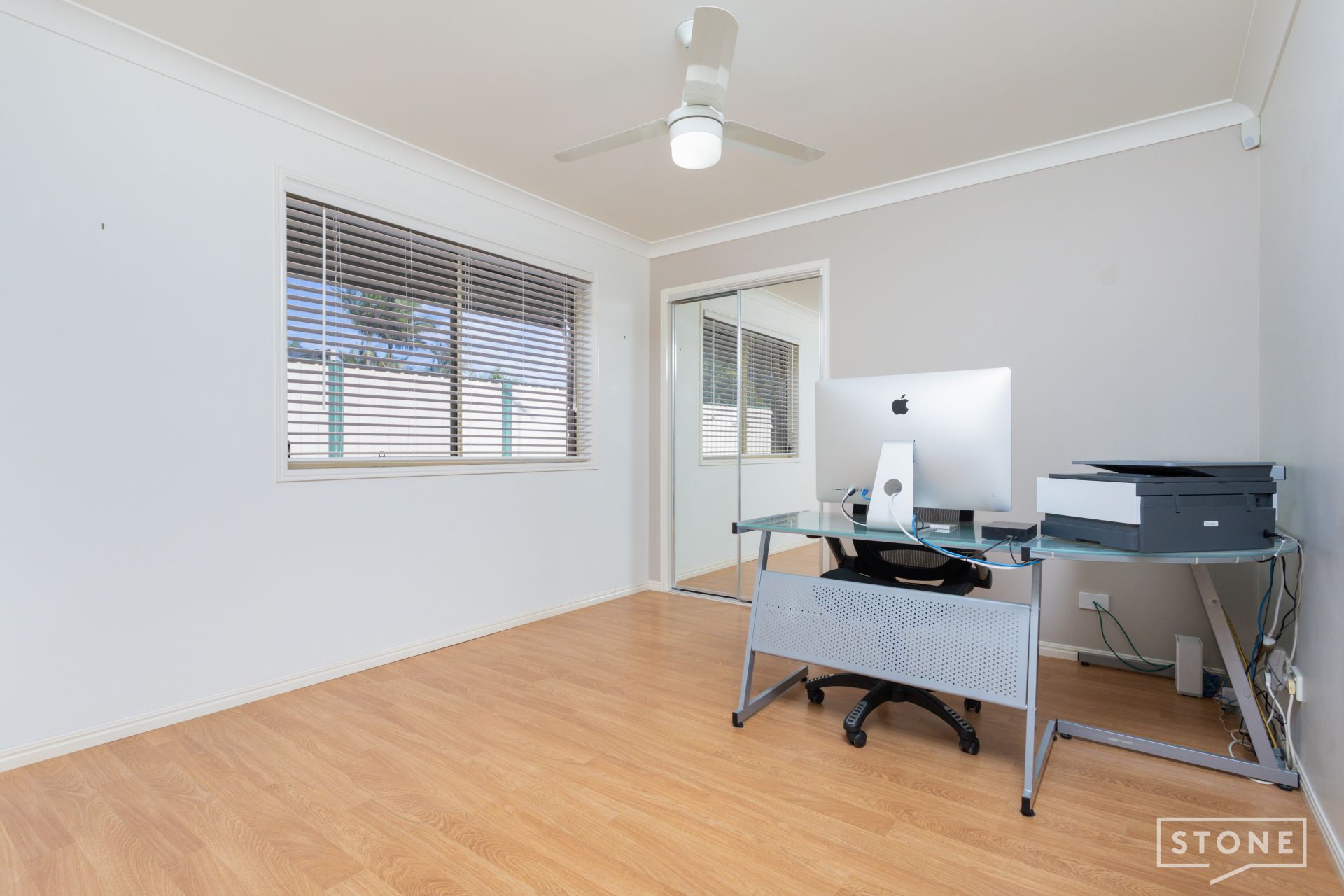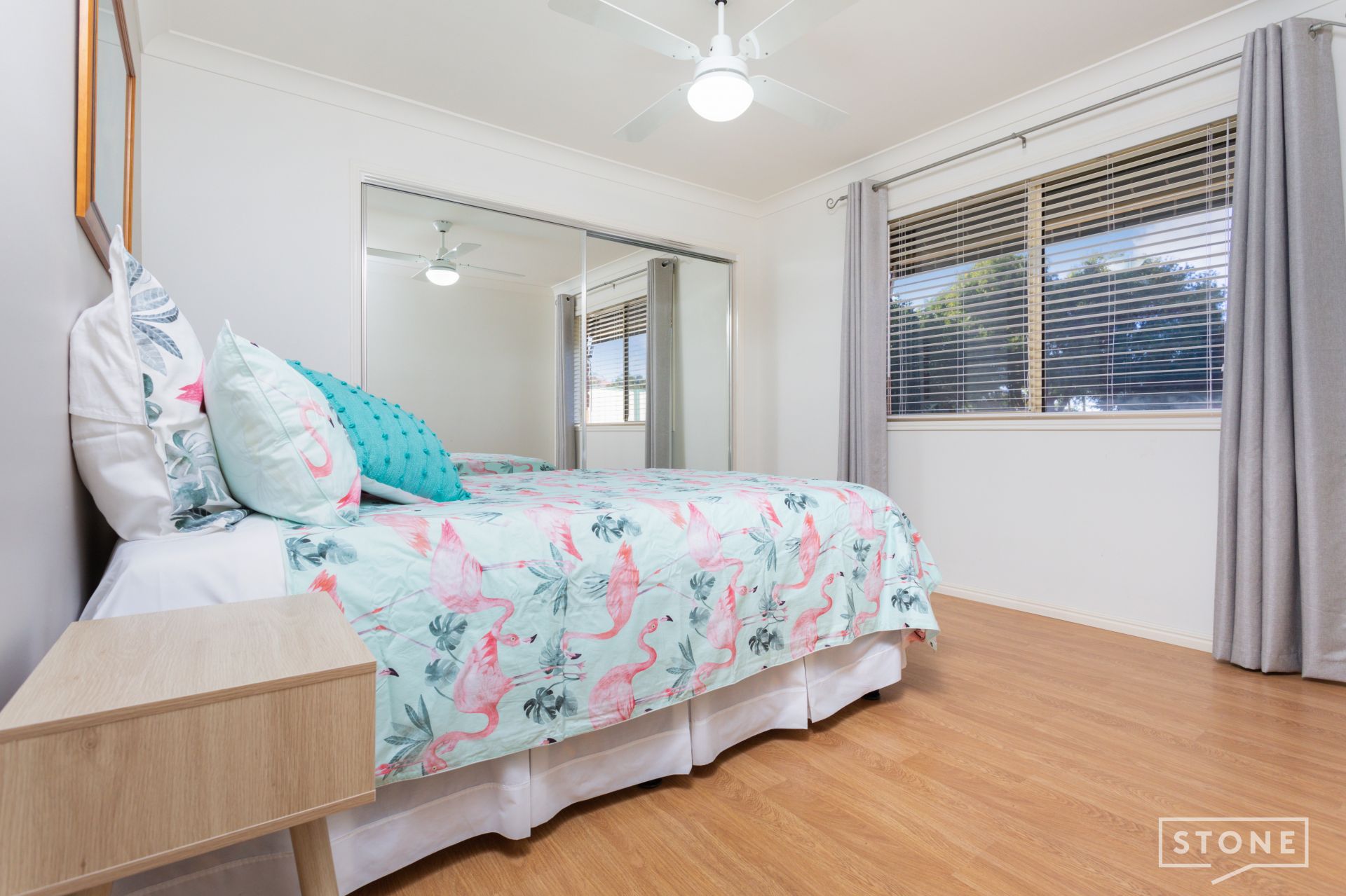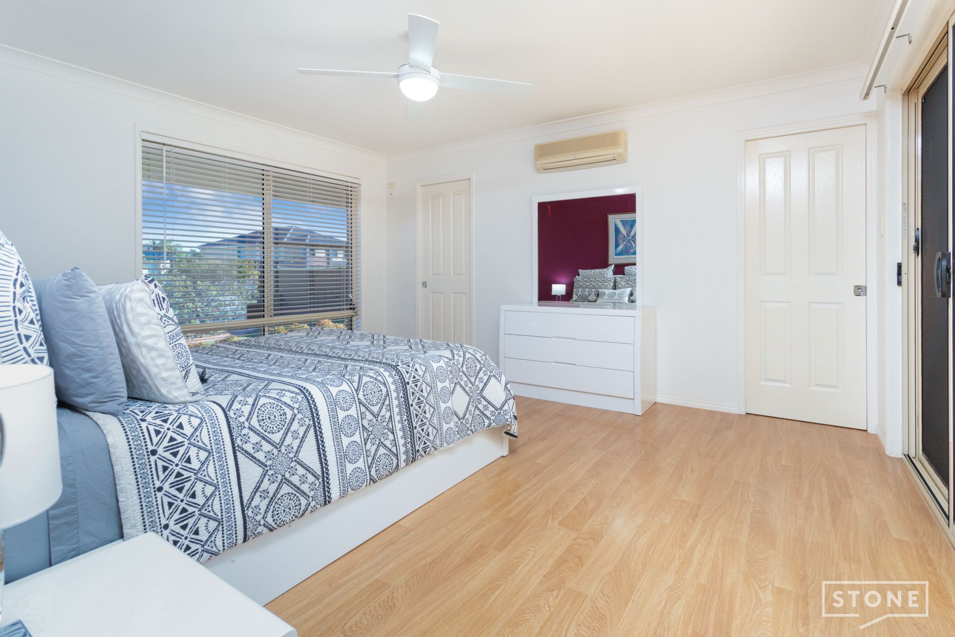 - Three separate well-sized bedrooms, each featuring ceiling fans and the master with air-conditioning, built-in wardrobes with mirrors in three bedrooms and the master with a walk-in wardrobe