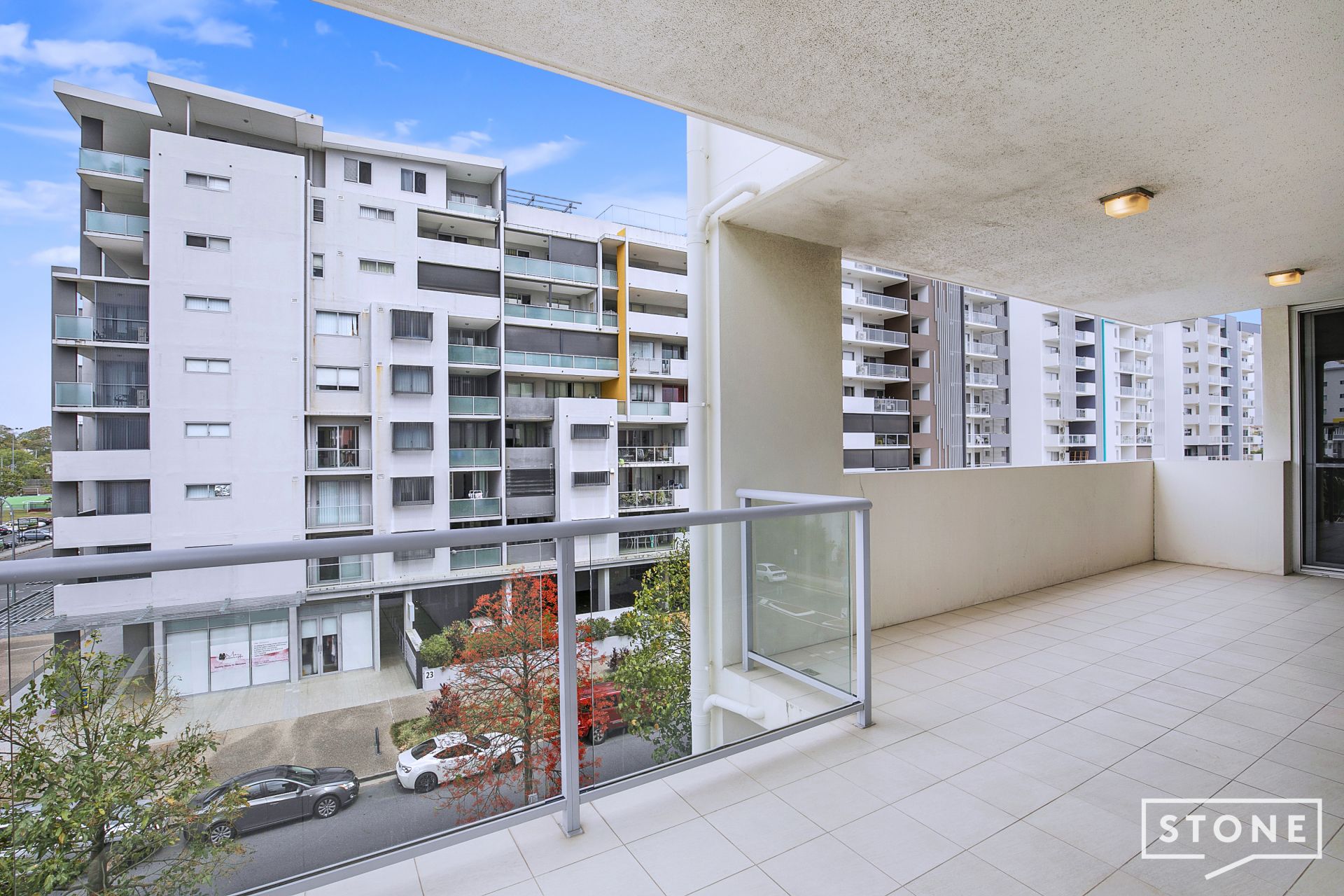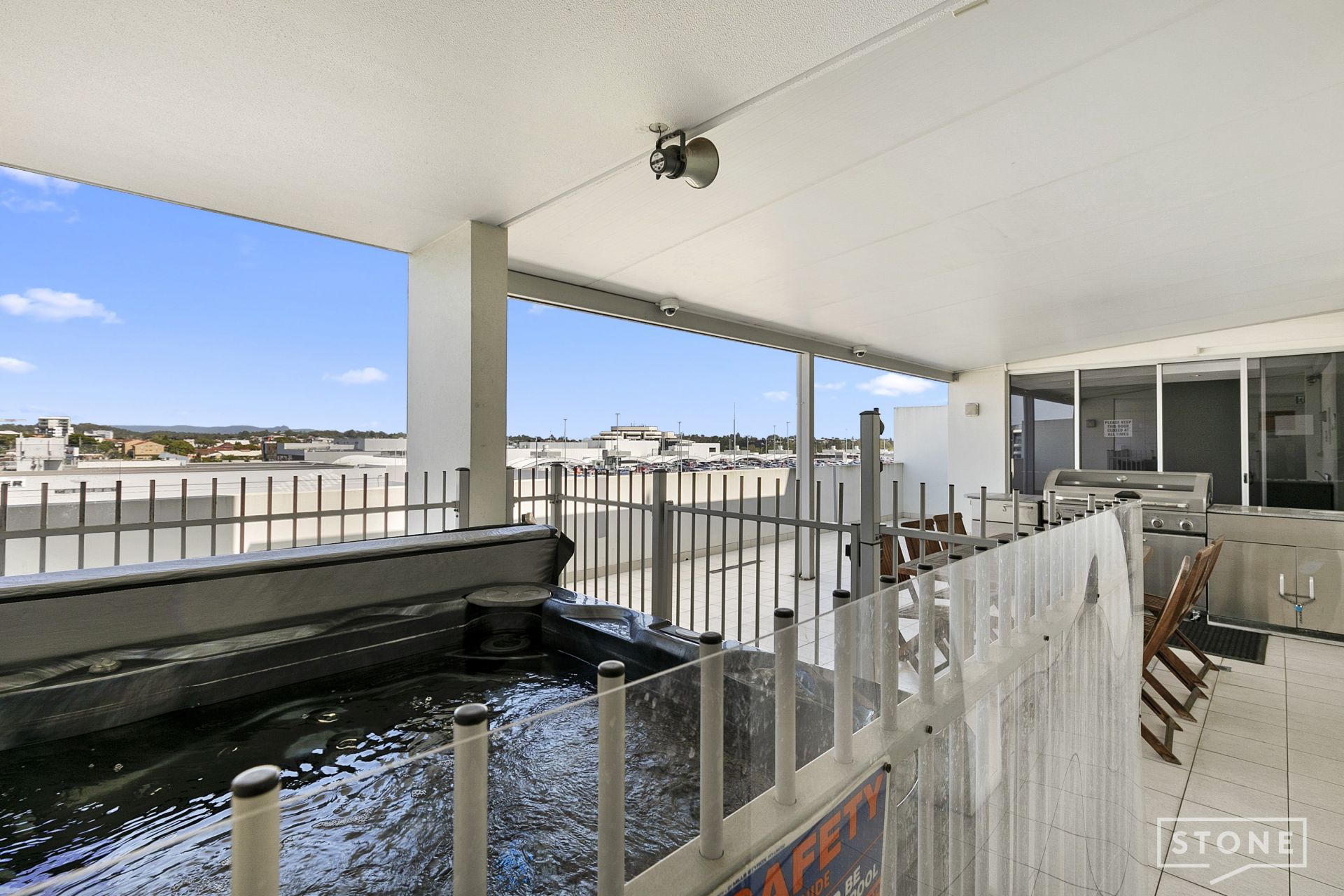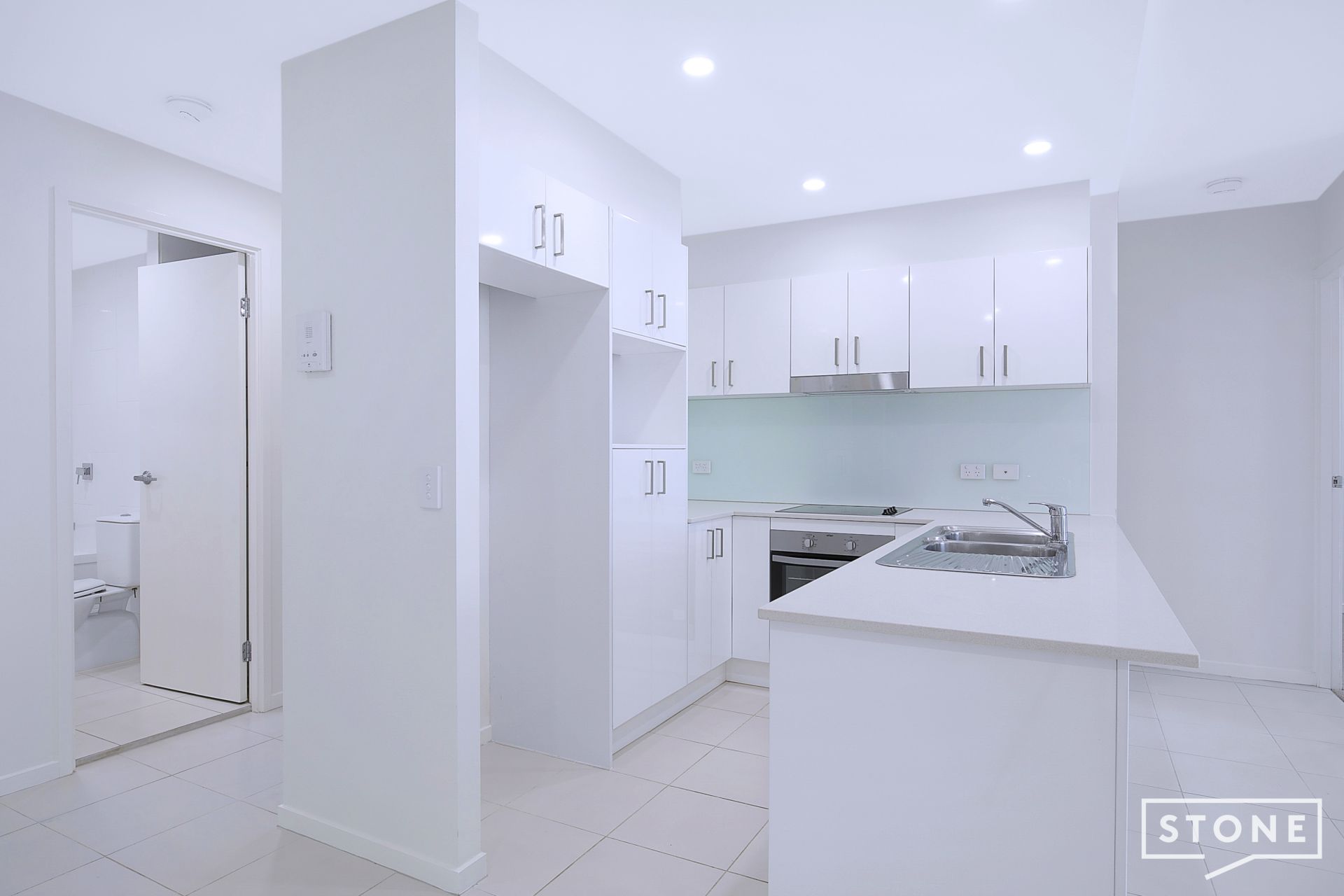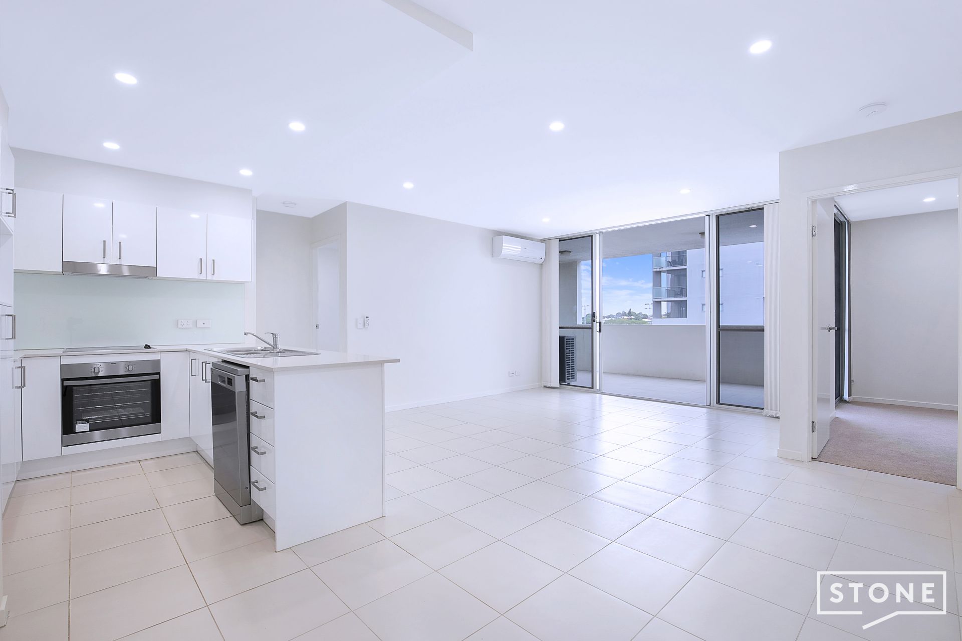 - The kitchen itself enjoys views out to the balcony and boasts modern appliances including 4 burner electric cooktop, oven, rangehood plus dishwasher. Stone benchtops plenty of cupboards space plus a glass splashback and double basin sink