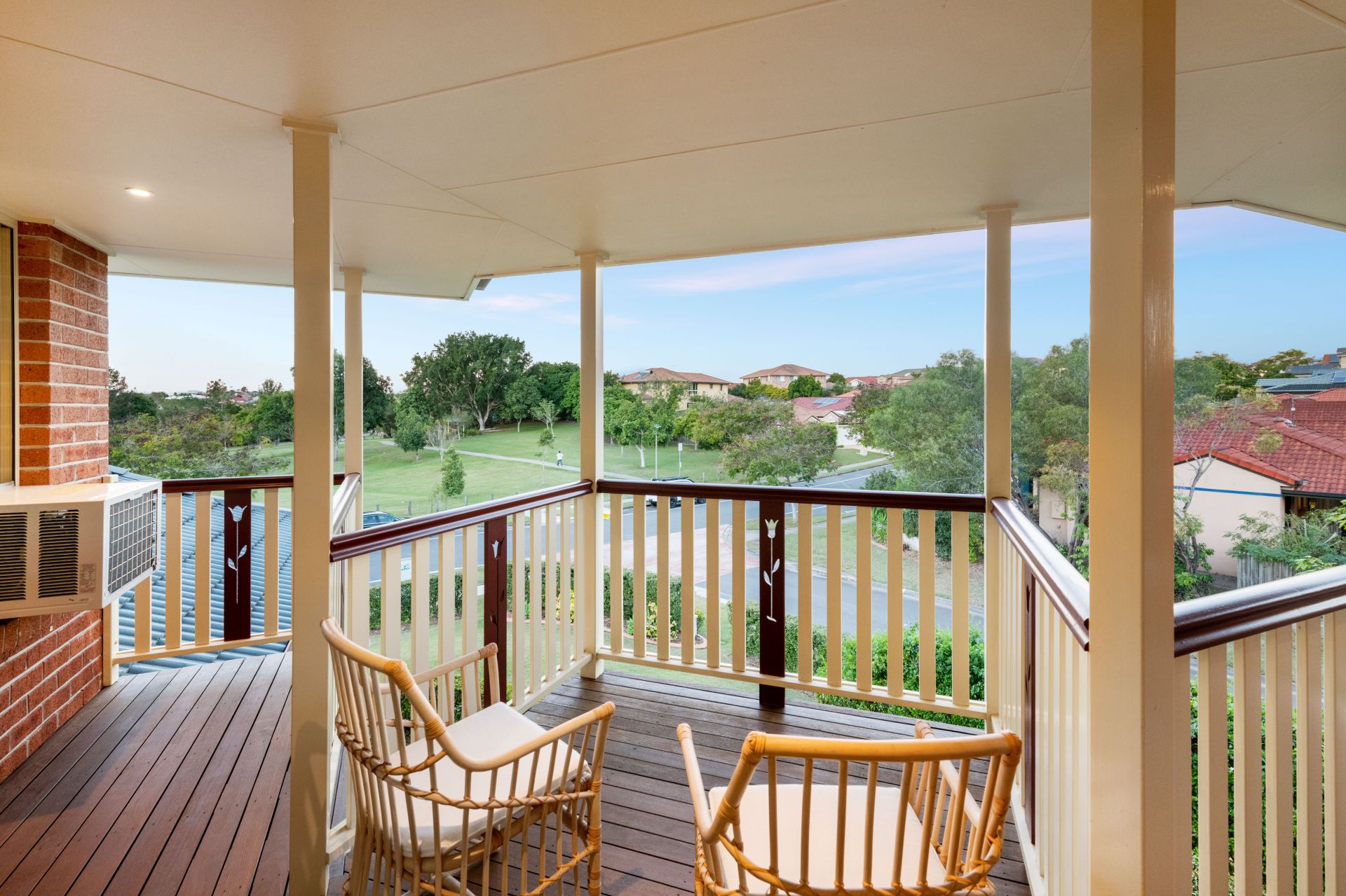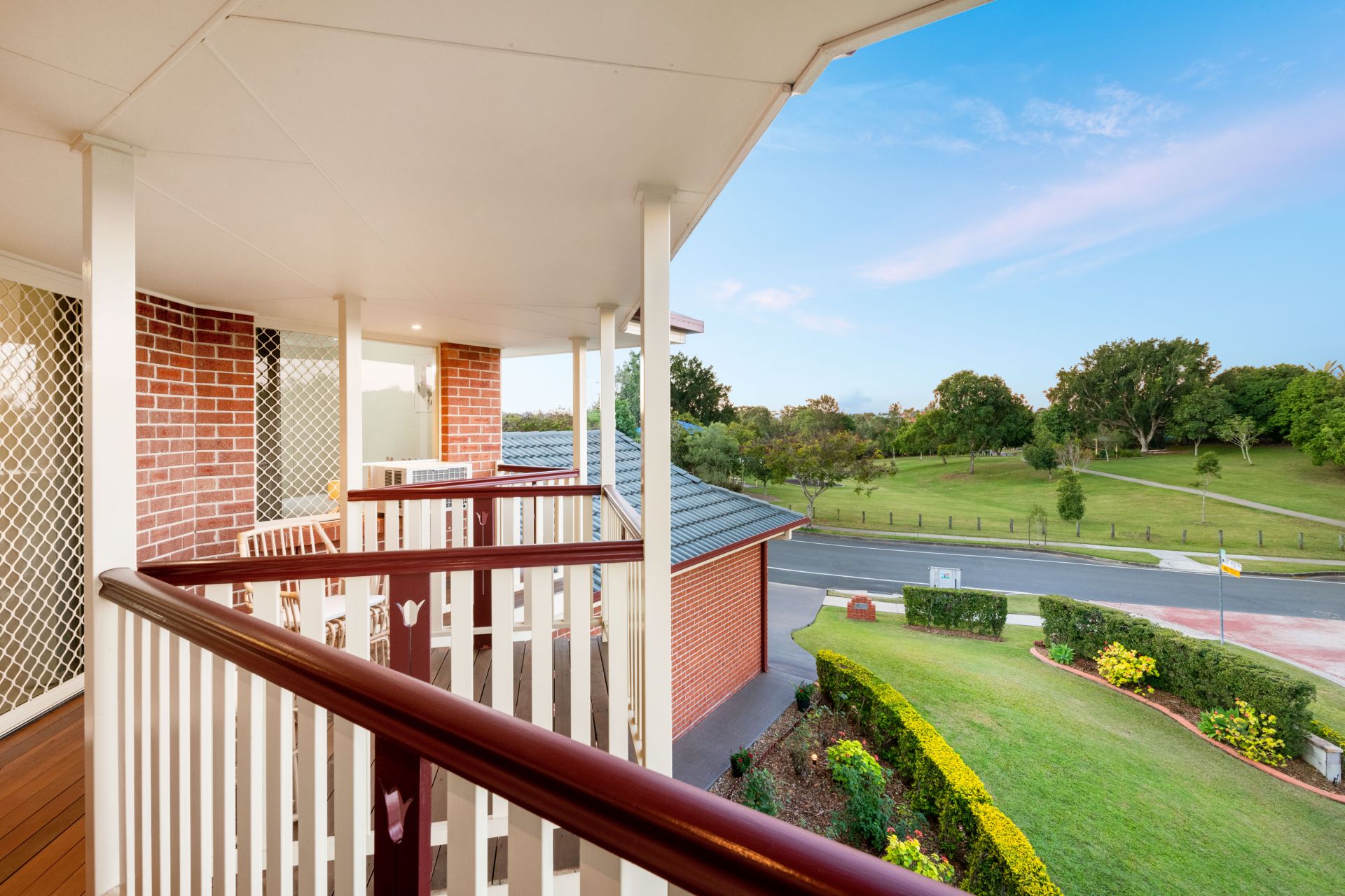 - The front balcony overlooks the park and playground across the street and is the perfect place for the parents to sit with some wine while the kids play in the park still in sight and safe and sound
