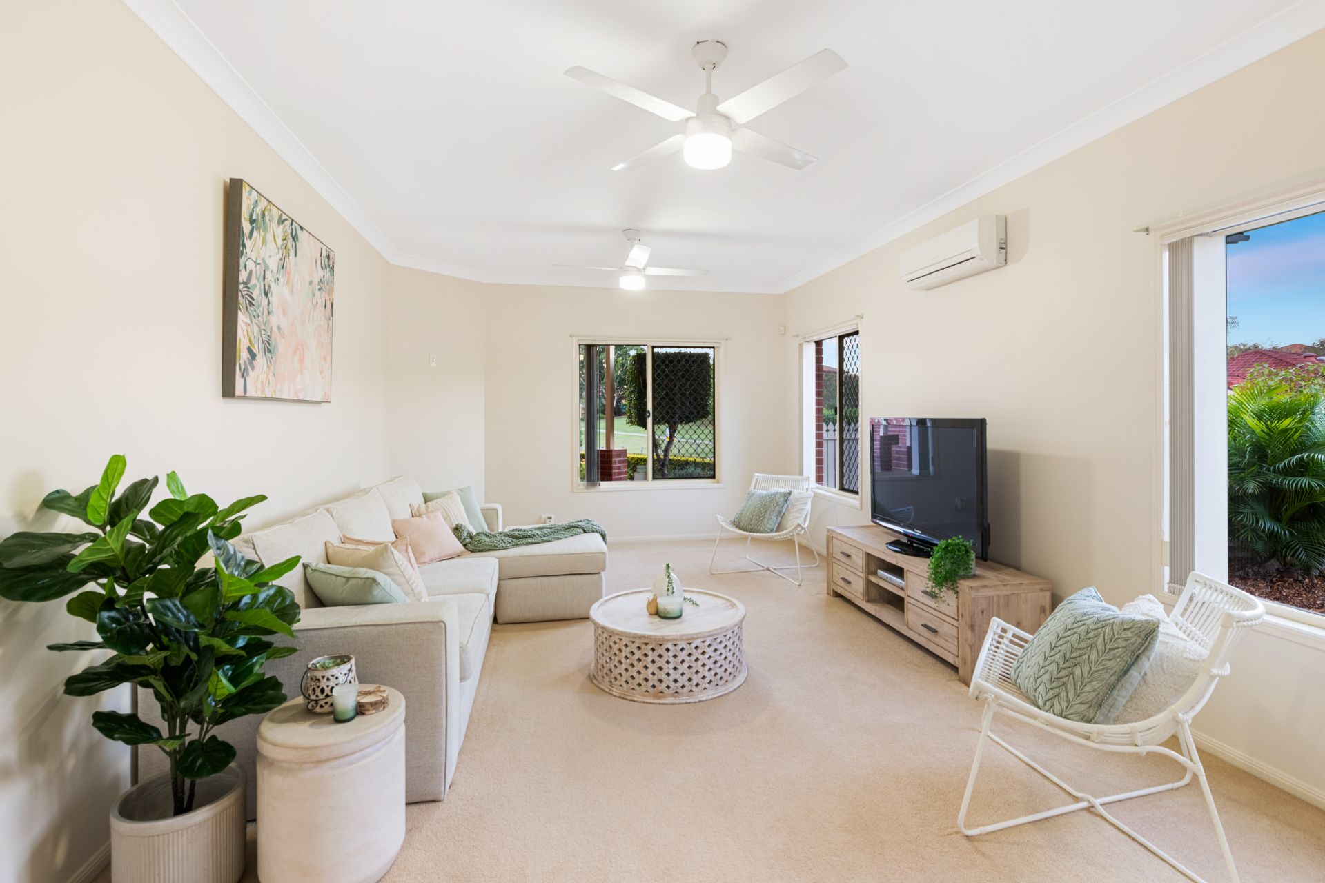 - Family room is a large light-filled space, with great views of Streisand Drive Park, this room features carpeted flooring, split system air-conditioning and ceiling fans.