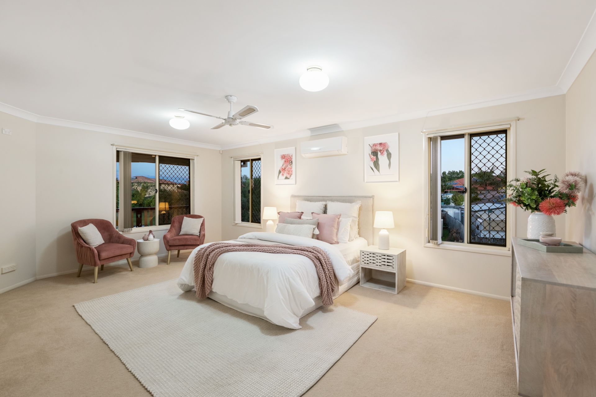 - Bedrooms three, four and five are all good size rooms and feature carpeted flooring air-conditioning, ceiling fan and built-in-robe.