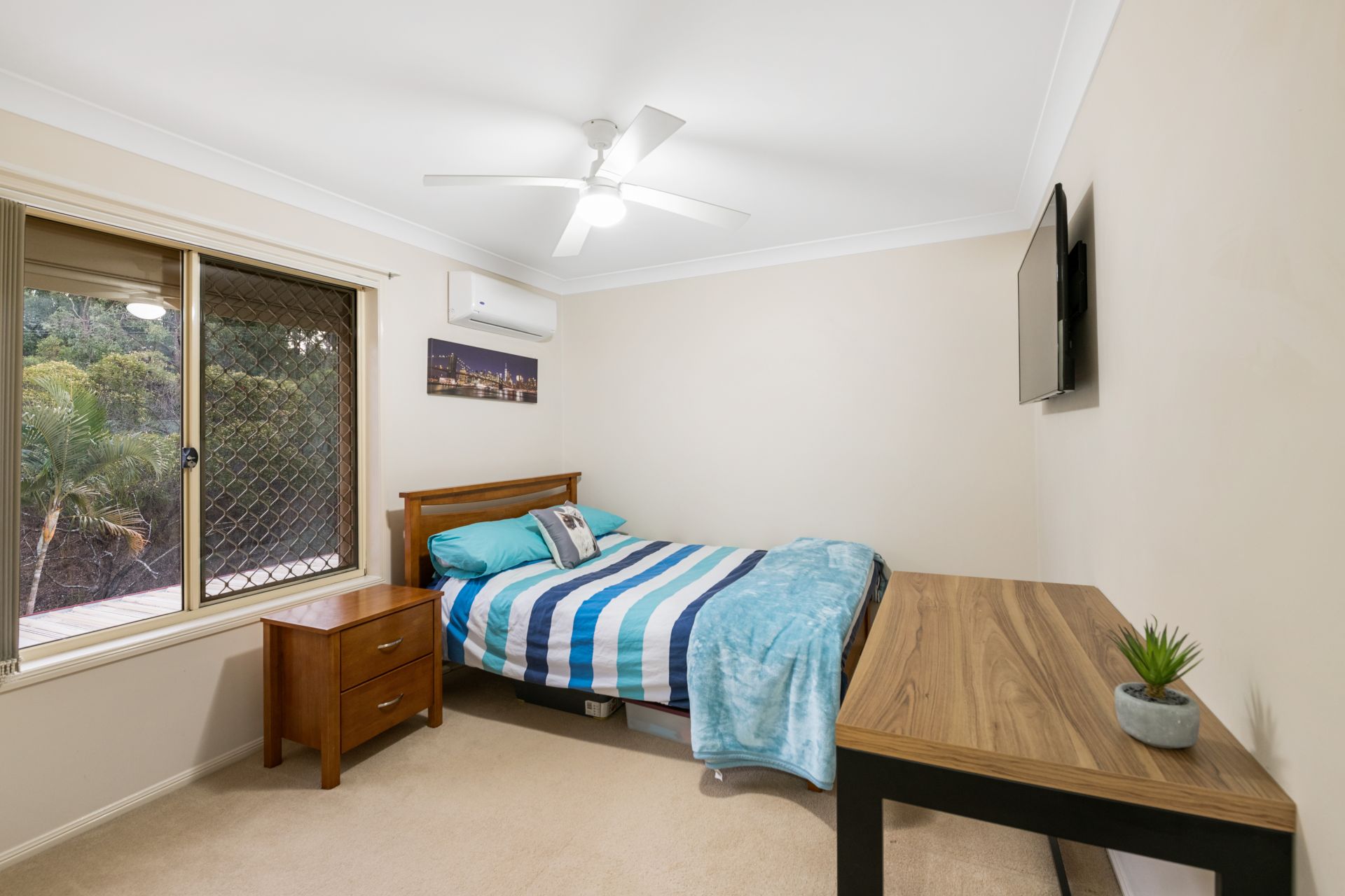 - Bedroom one is the home's spacious master suite. Enjoying great views out over Streisand Drive Park, this light-filled room features carpeted flooring, large ensuite, split system air-conditioning, ceiling fan and walk-in-robe.