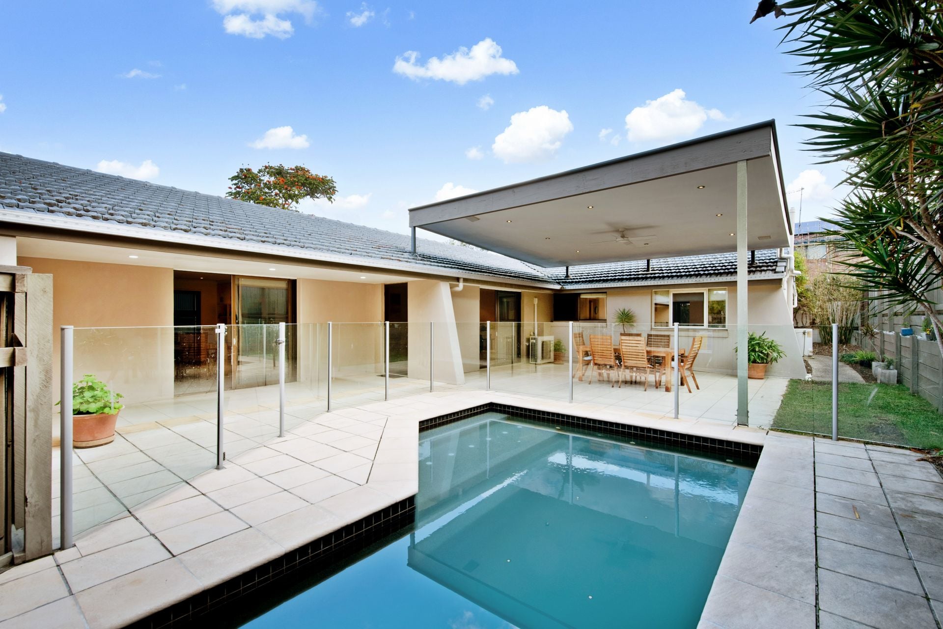 - Private alfresco entertaining area overlooking in-ground pool