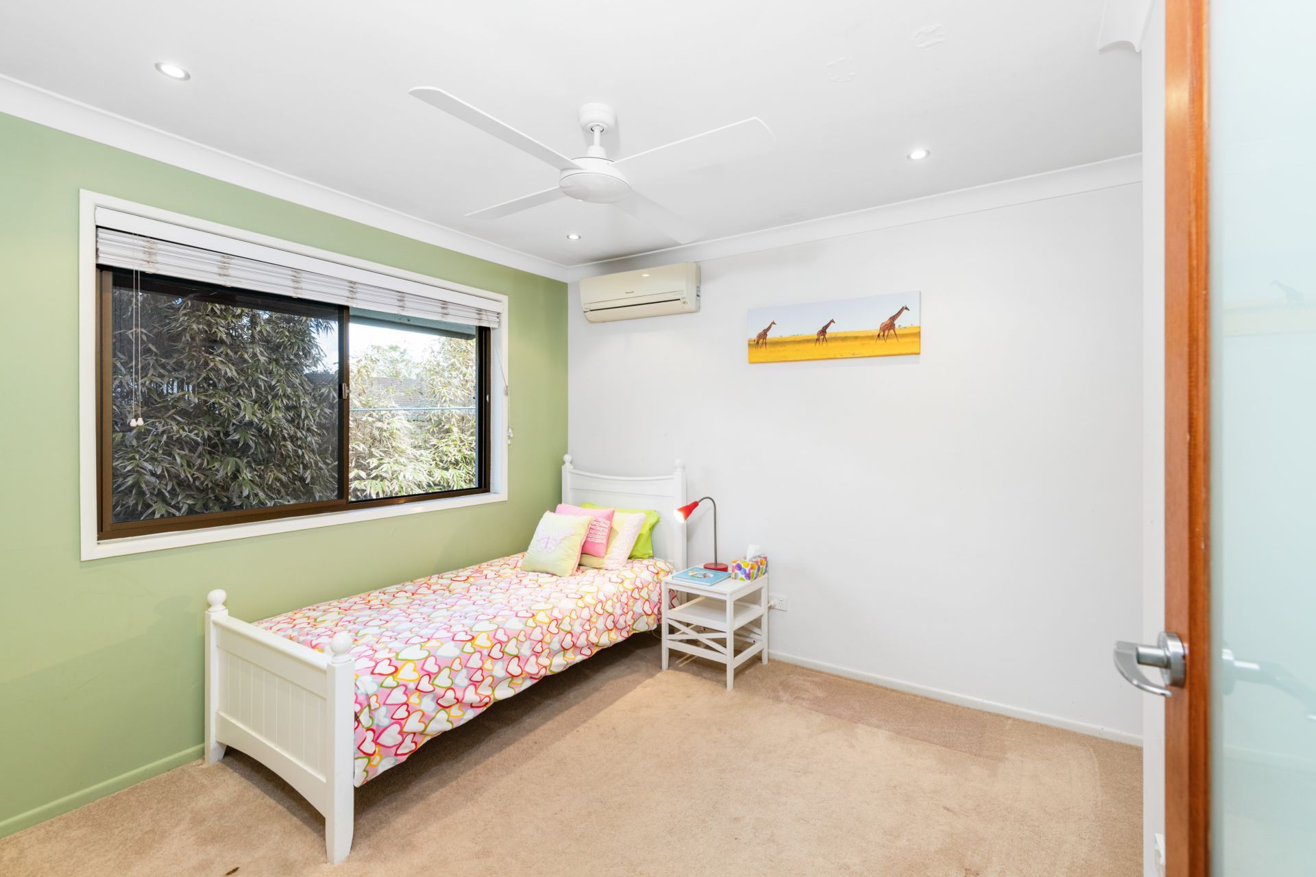 - Bedroom two features carpeted flooring, split system air-conditioning, ceiling fan and built-in-robe.