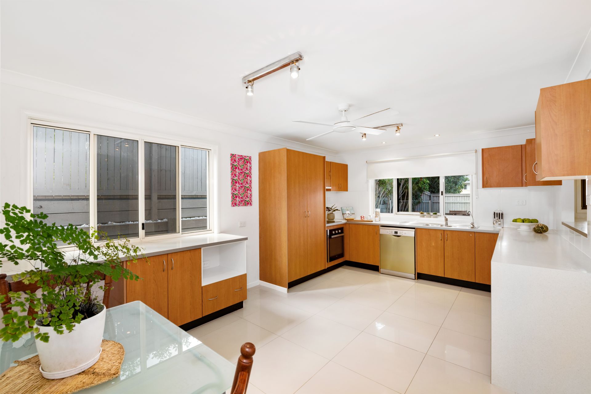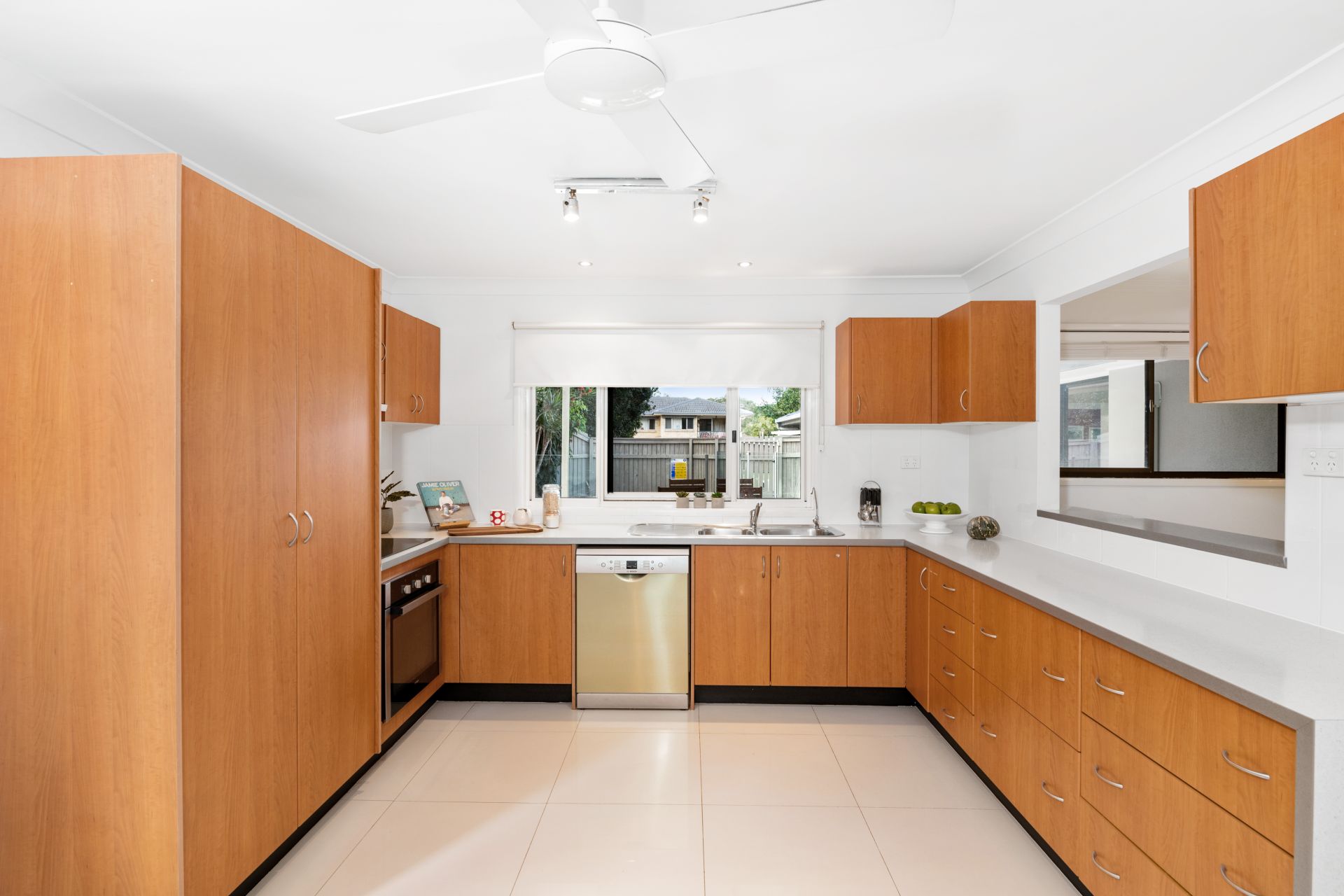 The kitchen is perfectly positioned with complete visibility over the covered outdoor area and in-ground pool. Sharing a large space with the home's meals area, it features: