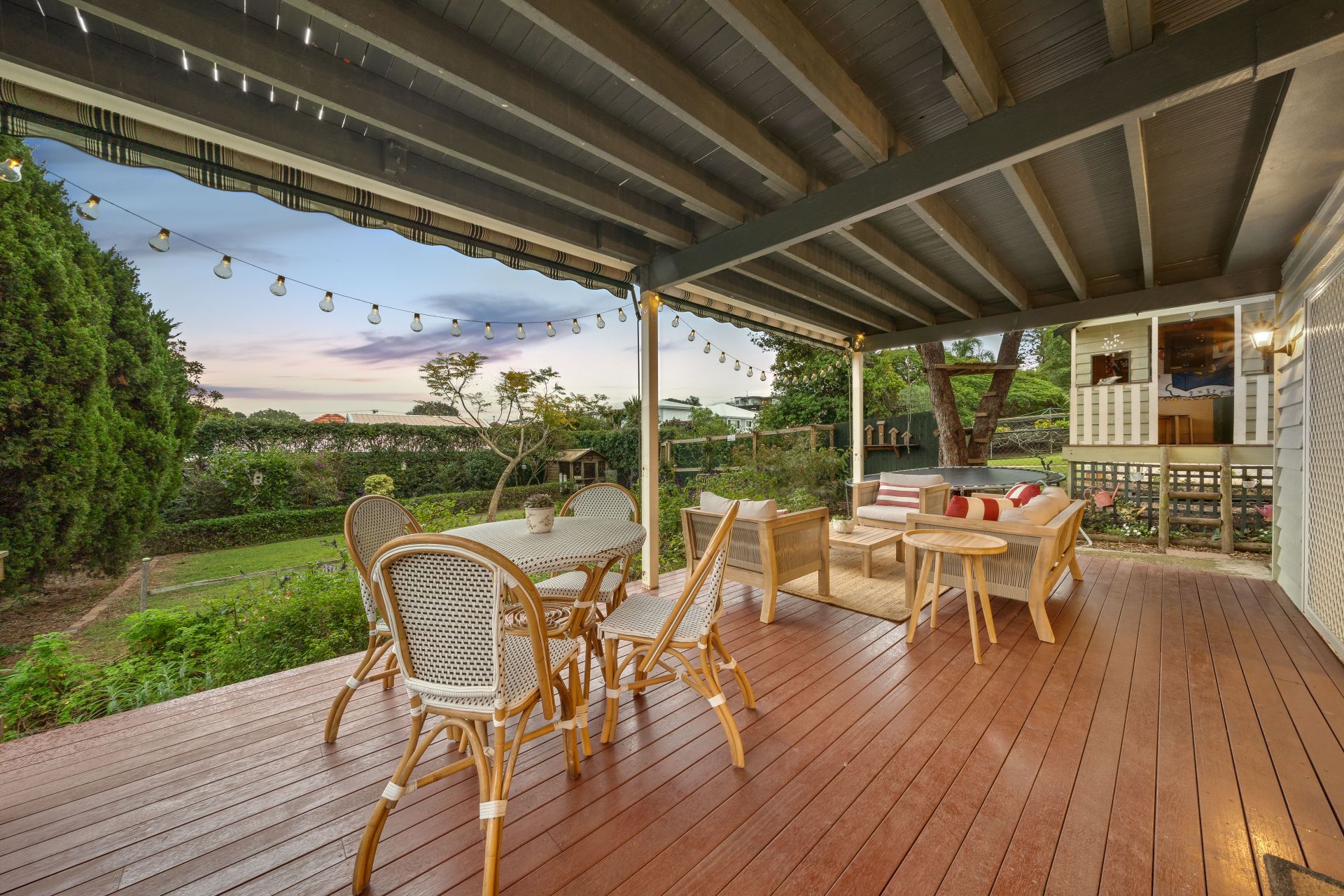 - Outdoor entertaining will be a breeze year-round on the dual covered entertaining areas from the elevated deck capturing City + Mt. Coot-tha views as-well-as cool breezes, dual double French doors allowing easy access from the living areas, outdoor lighting, stained decking and roll down café blinds to the second deck located directly under the top level deck that is perfect for open air entertaining, featuring outdoor lighting, roll down café blinds and access to the lower level rumpus room allowing you to enjoy the feeling of being outdoors no matter the weather