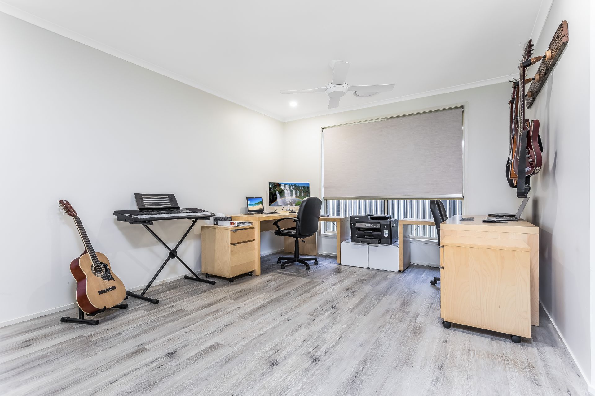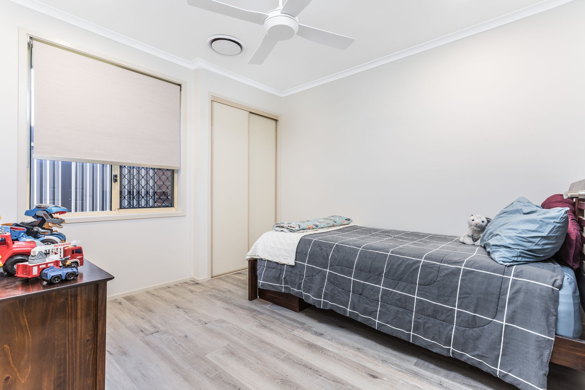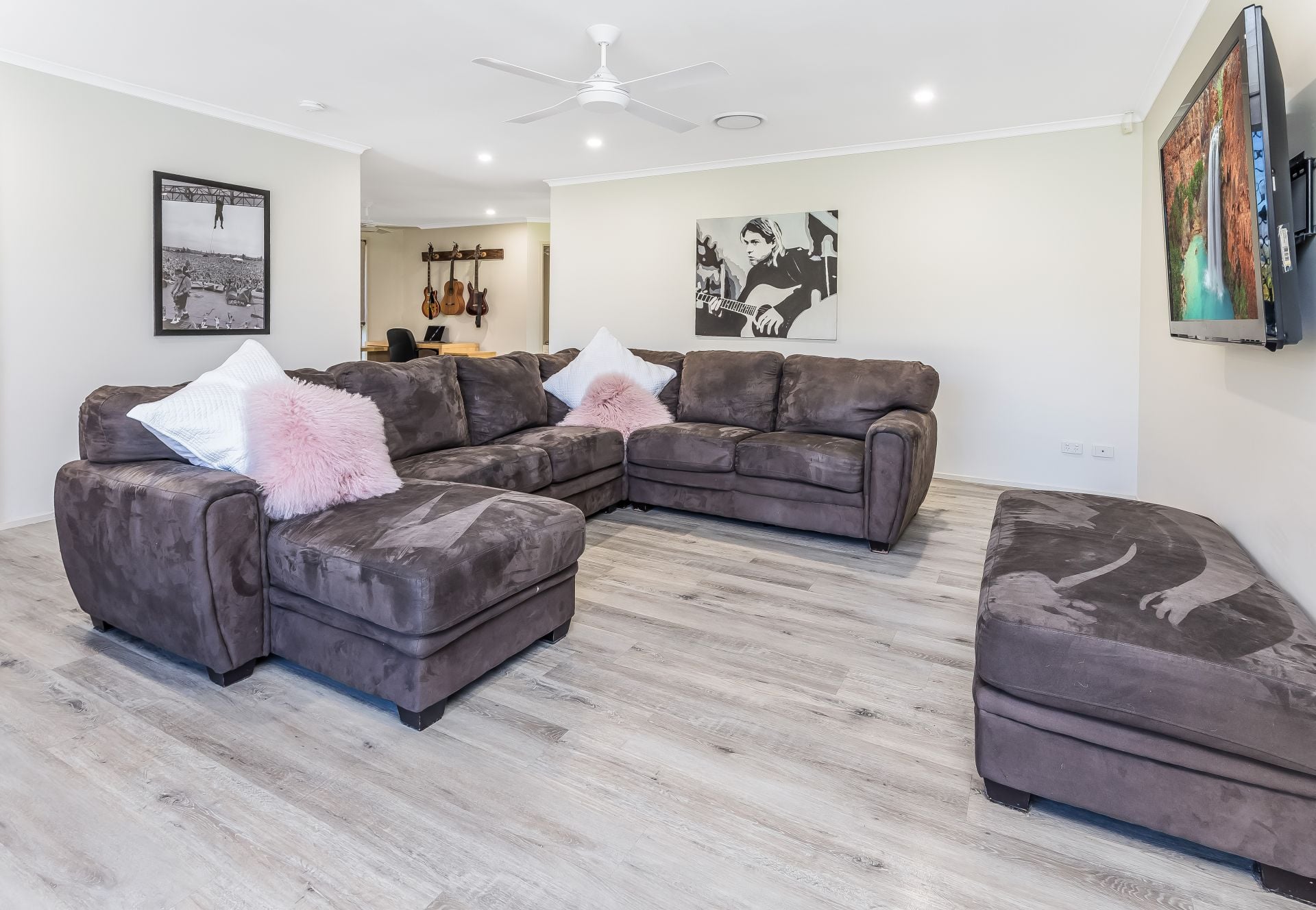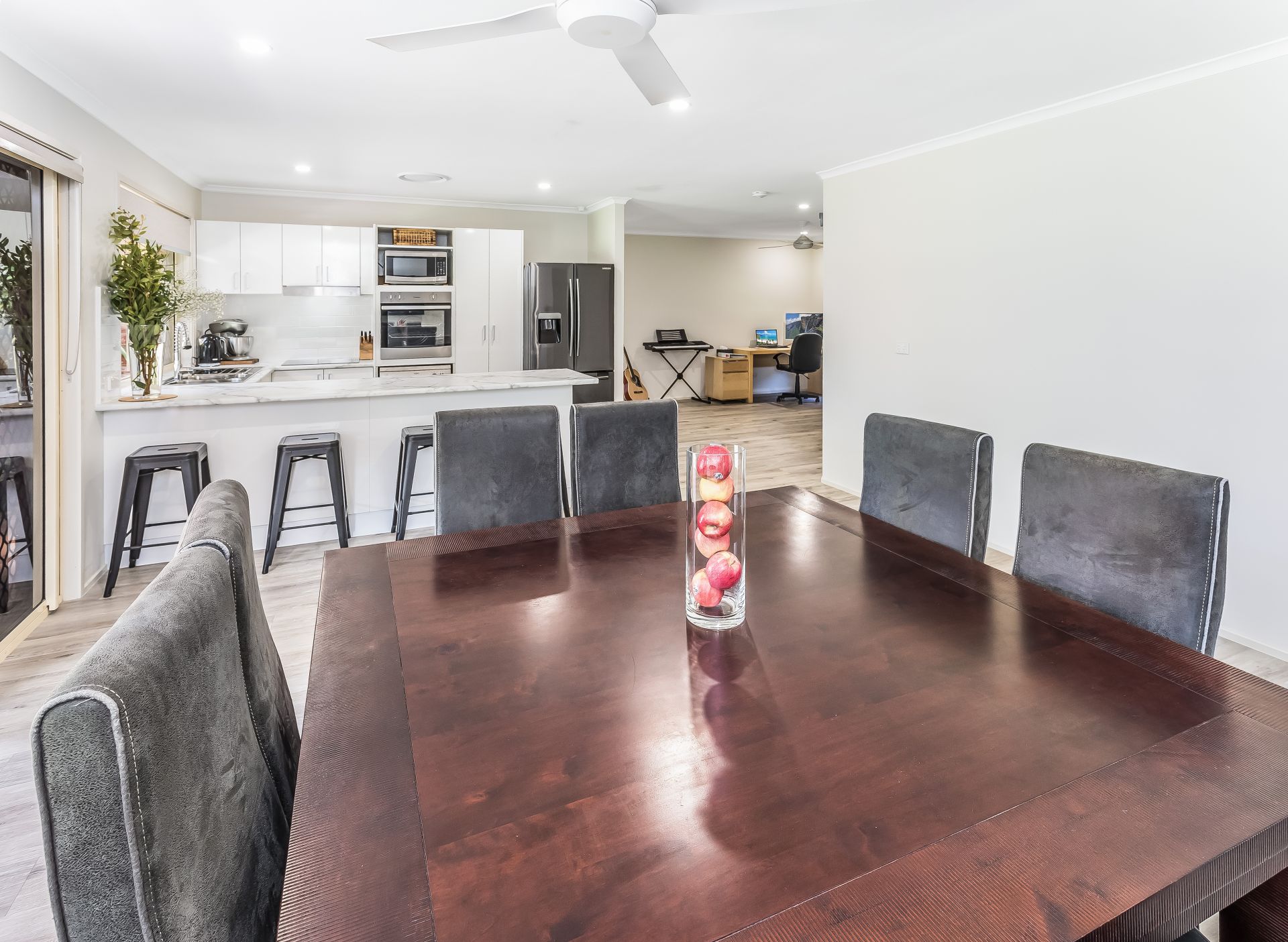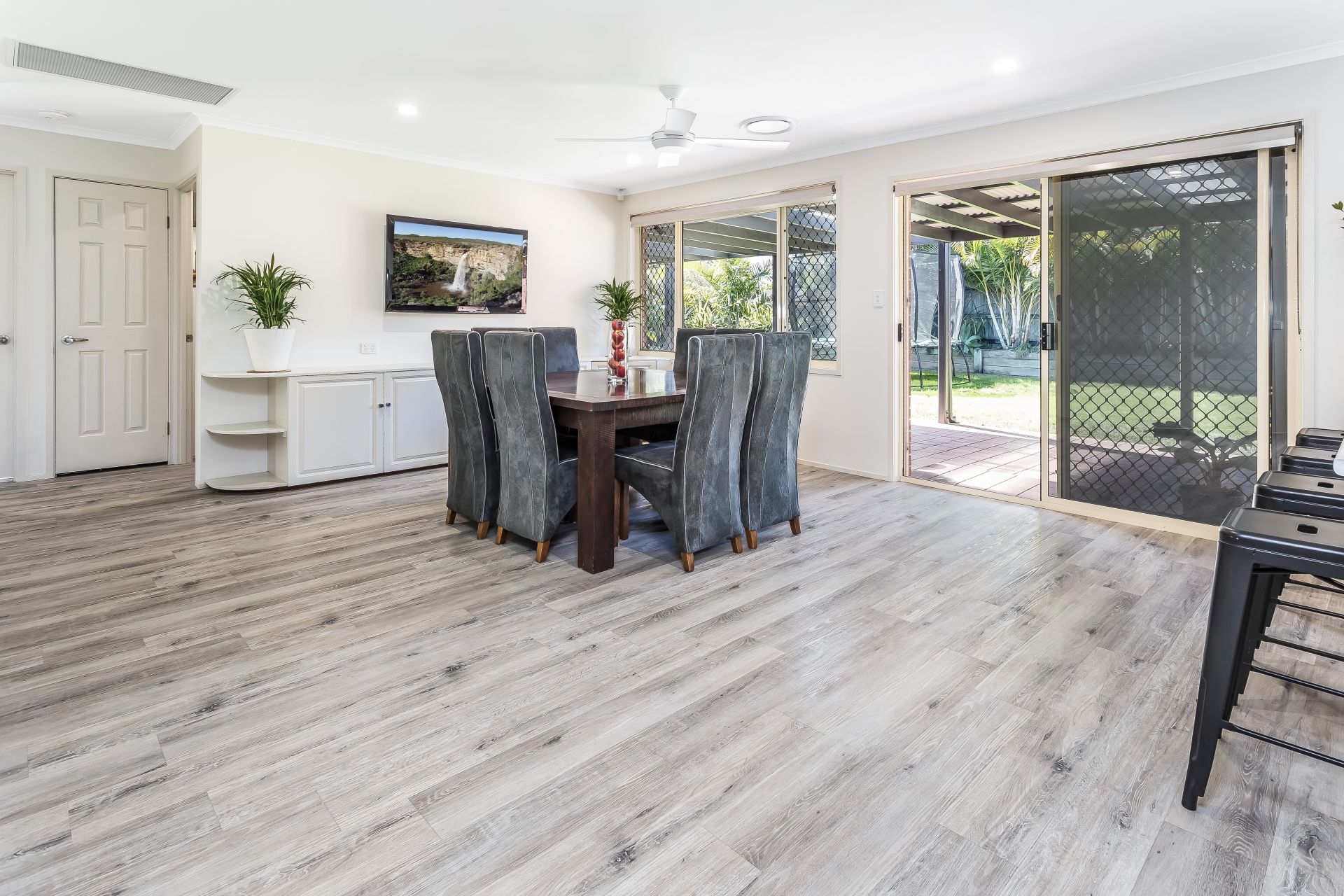 - Additional open living space which can be used as an alternative dining area, study, play area or another living space with a ceiling fan