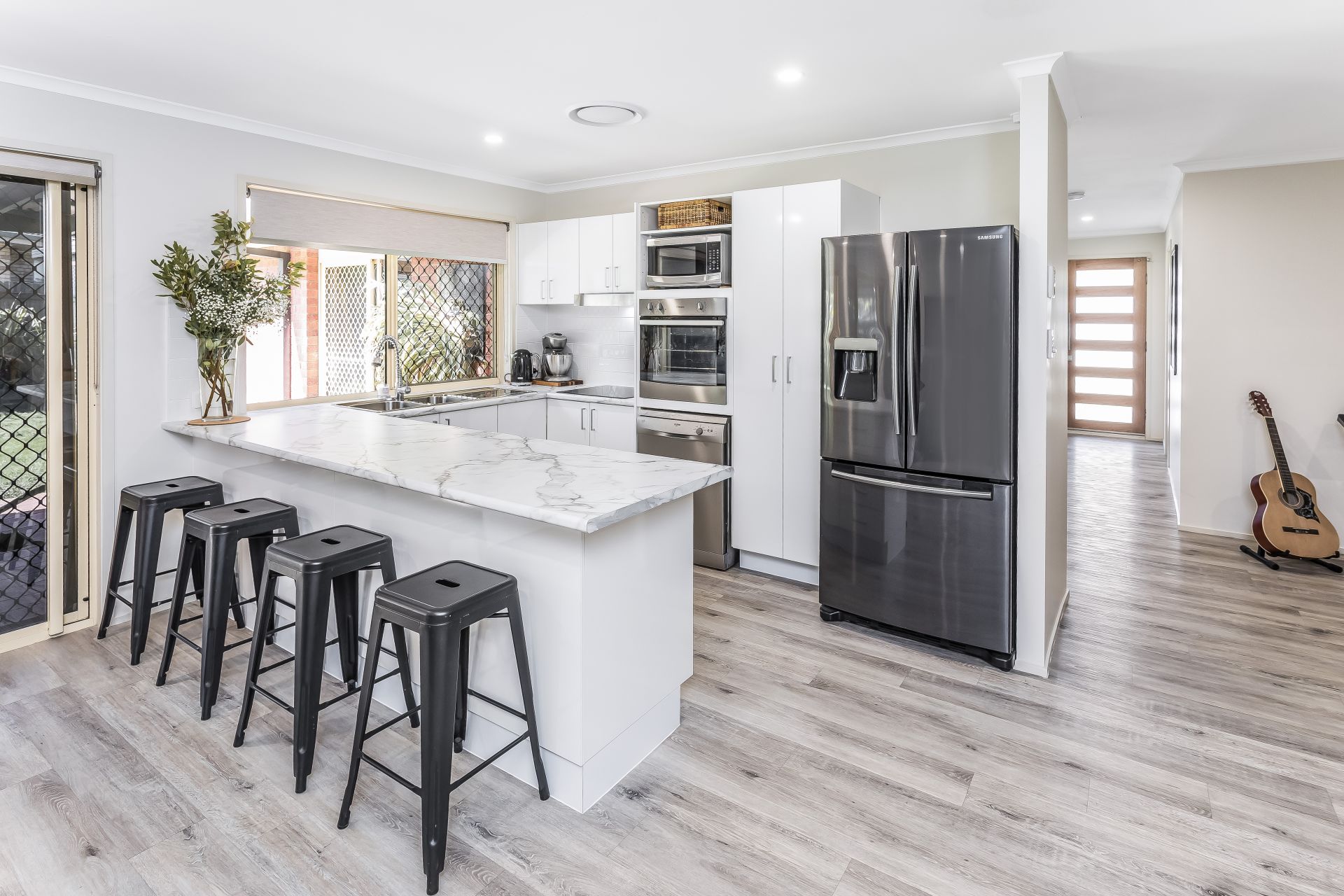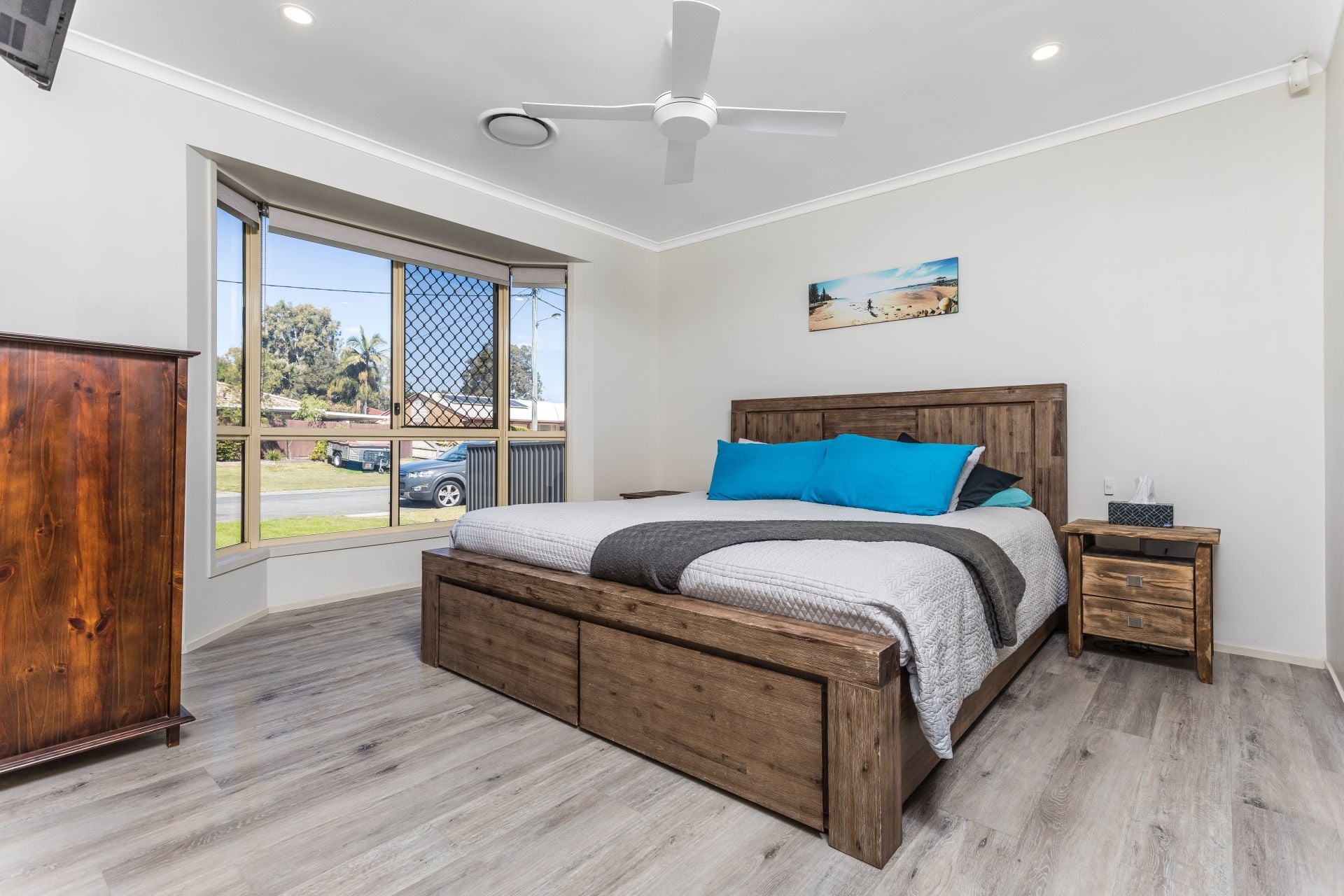 - Four generous sized bedrooms all with built-in wardrobes, ceiling fans, security screens and tinted windows. The large master bedroom with a walk-in wardrobe and ensuite