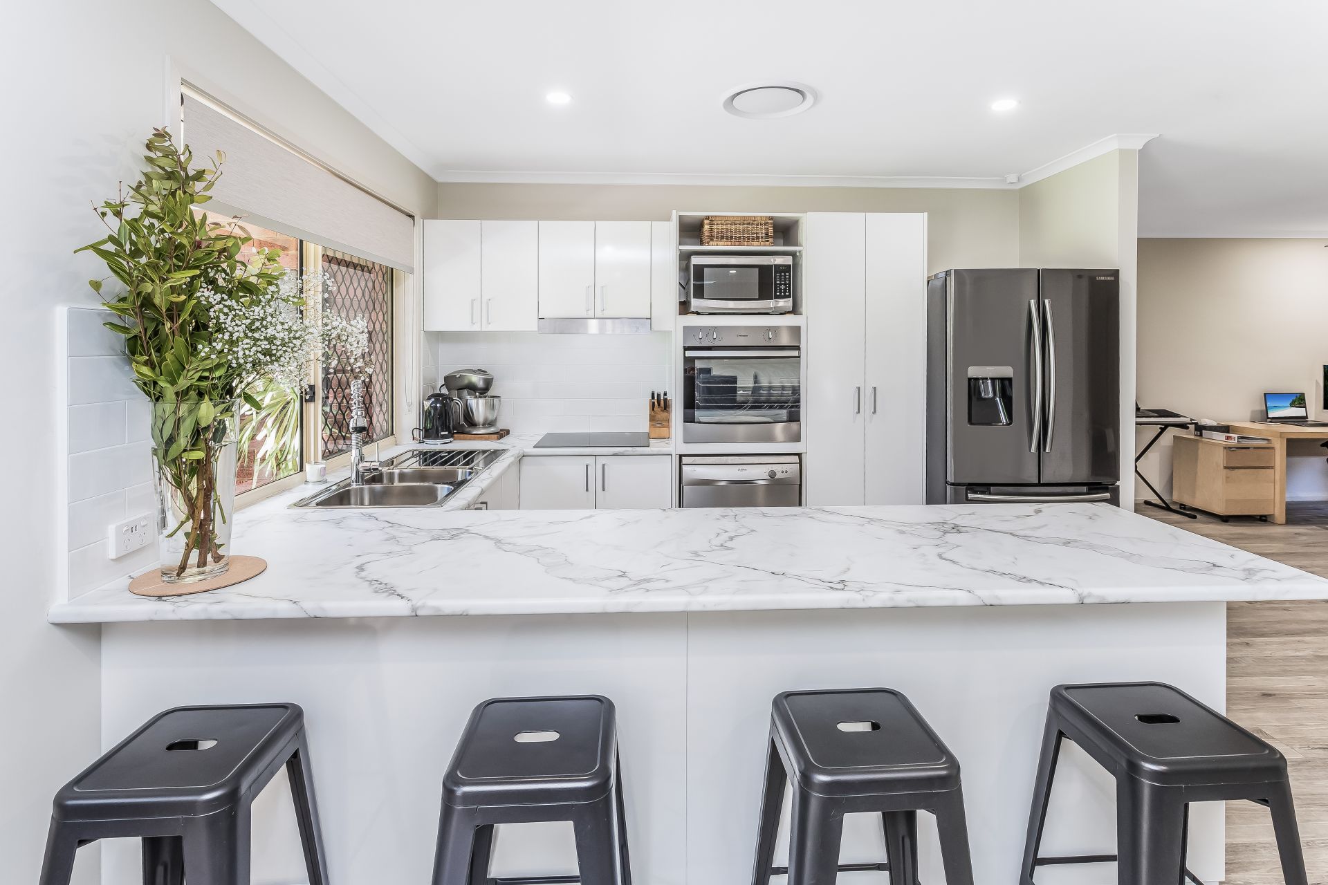 - Functional and modern kitchen with a breakfast bar that opens out to your dining area. Modern fixtures and fittings, induction cooktop, stainless steel dishwasher and ample bench and storage space
