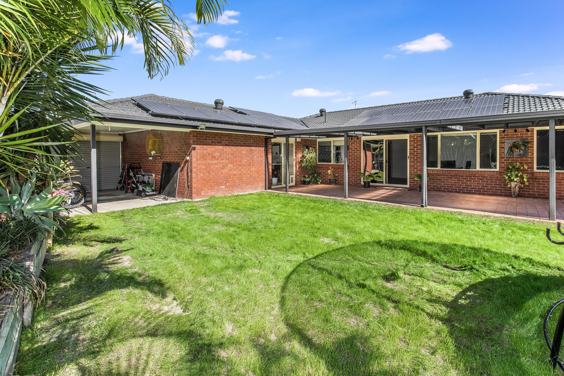 - Triple lock-up garage with one powered door and drive-thru access to the backyard