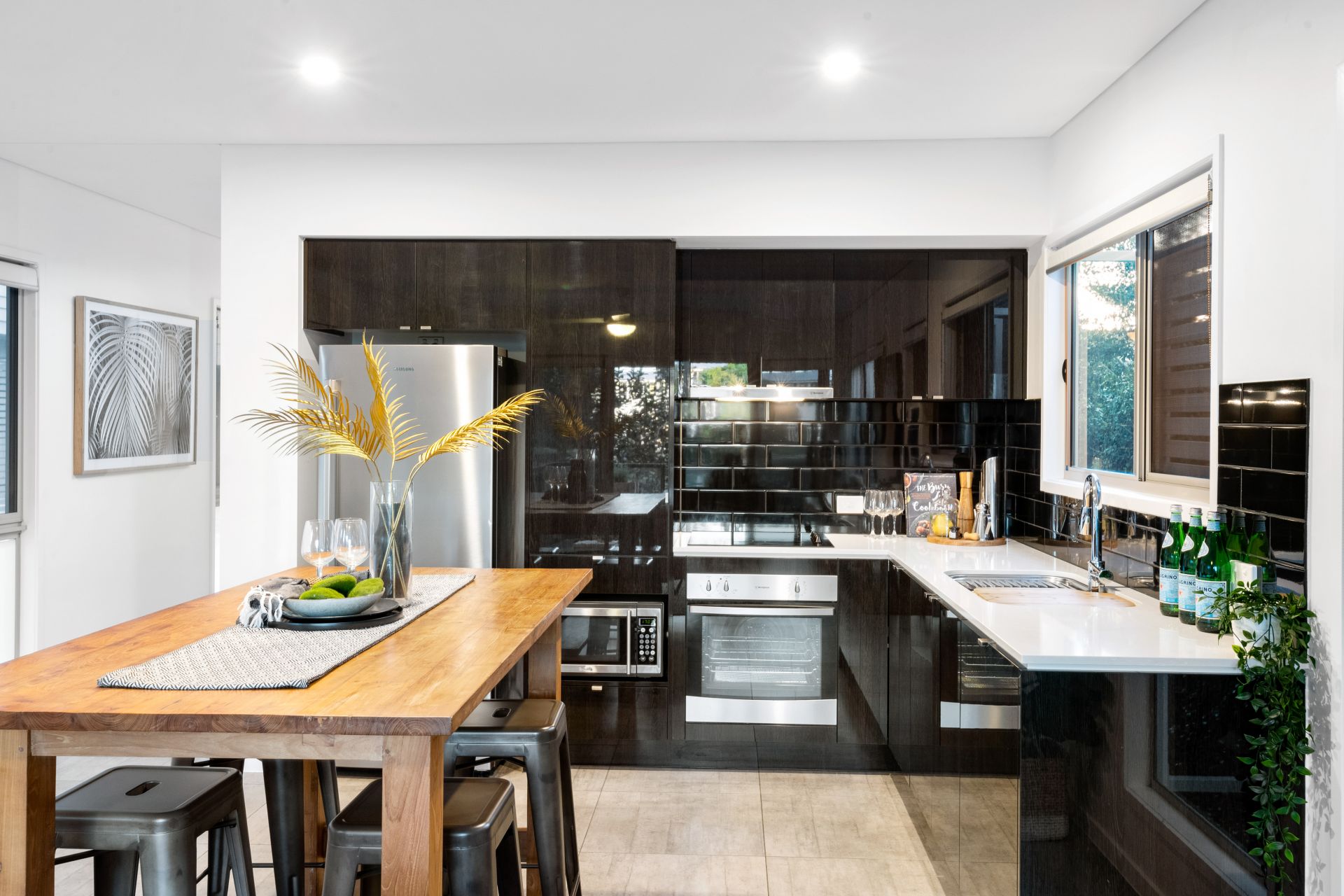 The beautiful open plan kitchen shares a space with the home's light-filled living room. Features include: