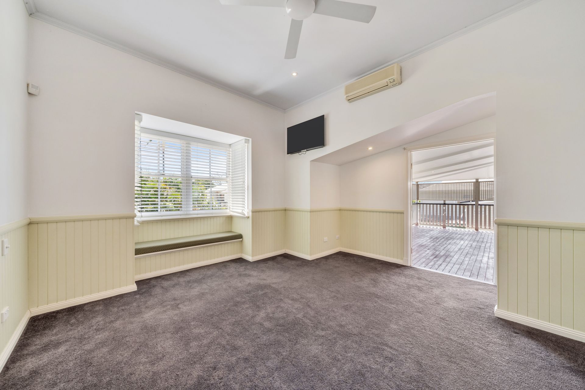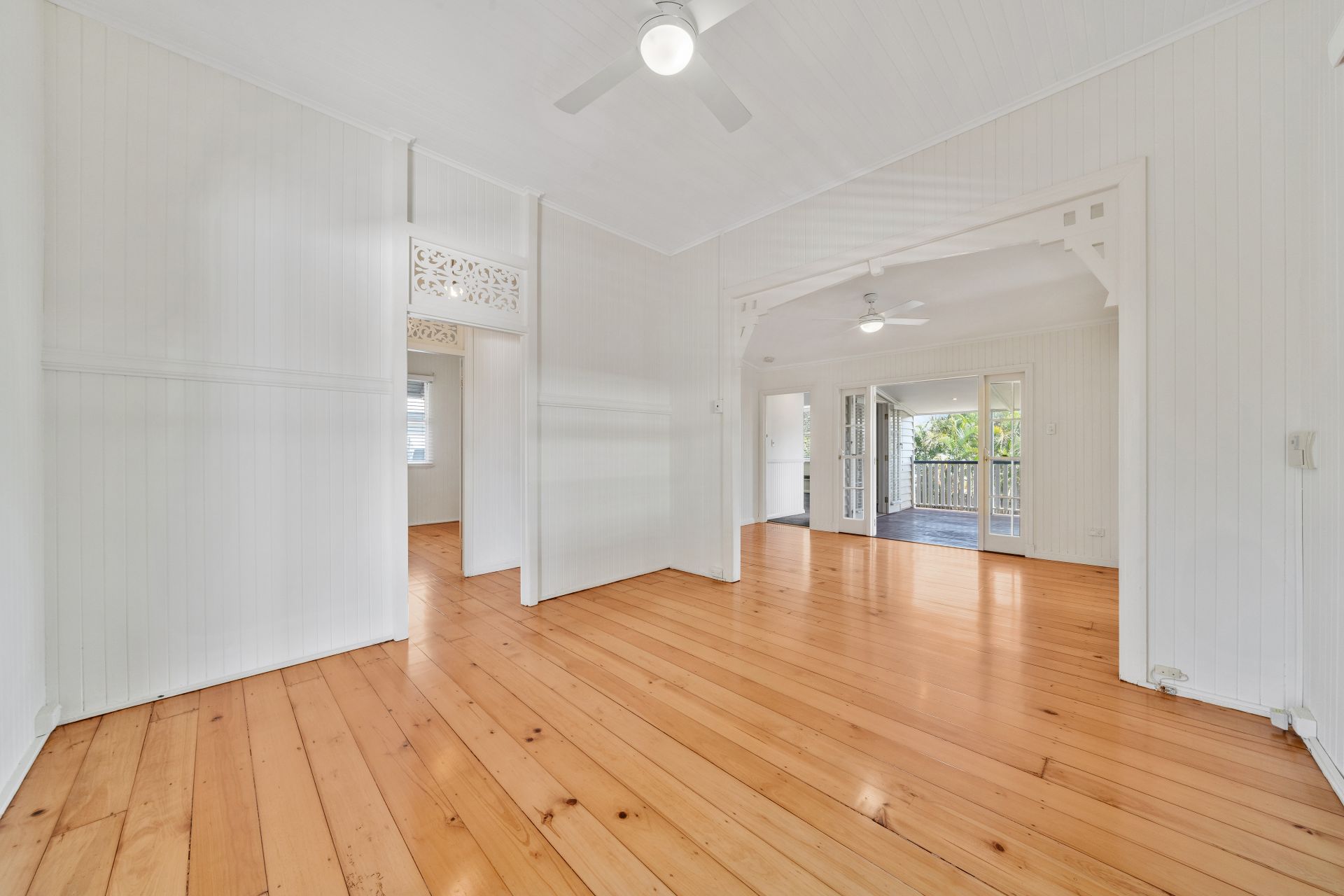 > Two connected flexible spaces with ceiling fans perfect for a relaxed lounge / study zone or retreat