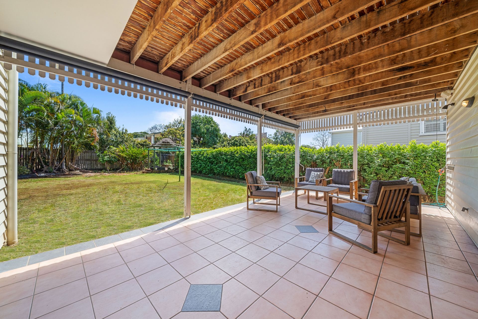 > Large covered alfresco space with gas connection overlooking the backyard