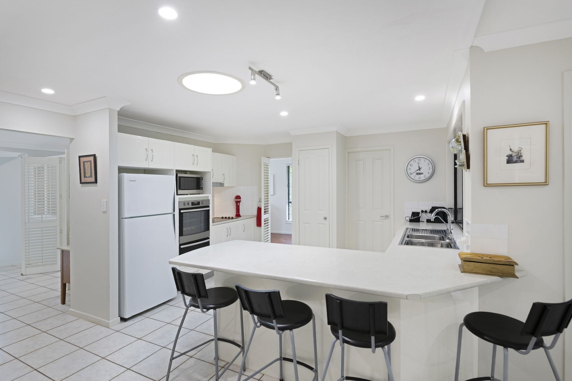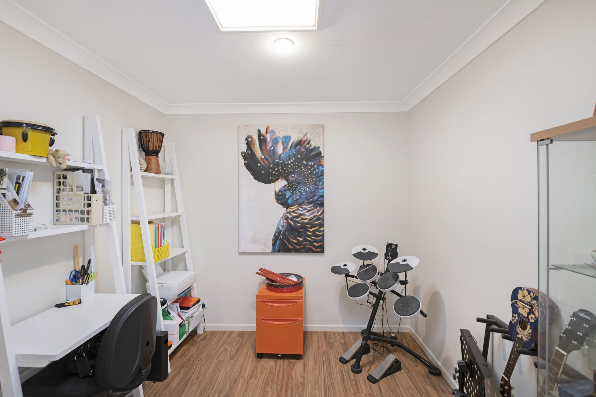 > Located close to the kitchen and living room this is the perfect space to take care of the bills in comfort or do some discreet Facebook stalking of the kids. Featuring skylight and timber look flooring, this space is semi enclosed and could be fully enclosed and used as a 4th bedroom if required.