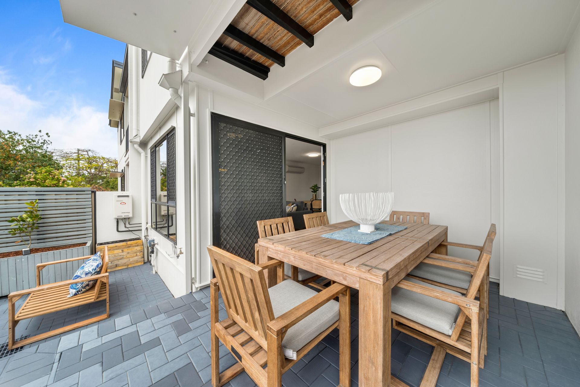 > The covered outdoor entertaining area encapsulates everything there is to love about our Queensland lifestyle boasting split level semi covered courtyard featuring outdoor power points and outdoor lighting, making it the perfect space to relax and unwind with family and friends