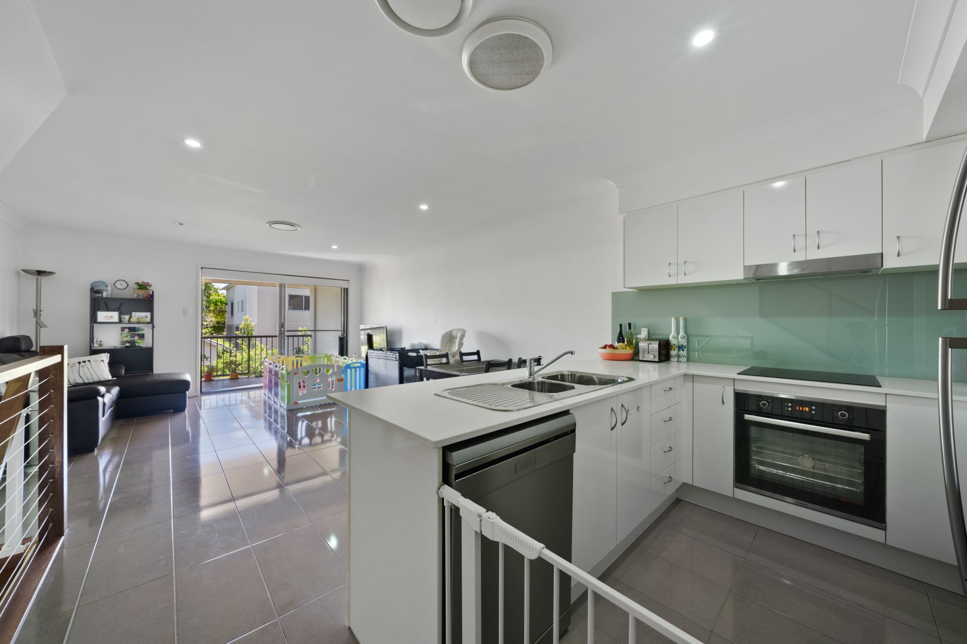 - Modern kitchen overlooking the living and dining areas features: