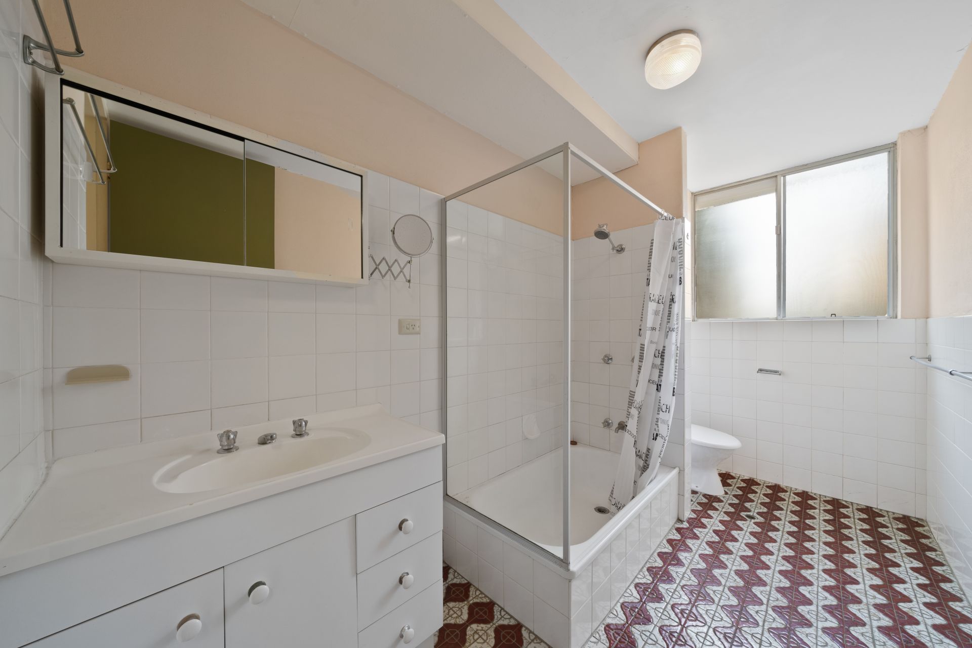 - Bathroom features a clean tiled wet zone, with toilet, natural light, bath over shower and a large vanity and wall hung cabinet.