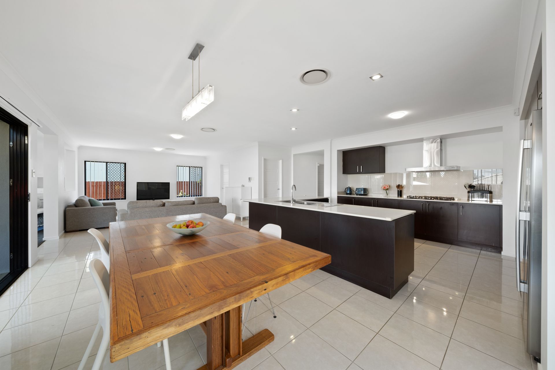 - Family room shares an enormous open plan with the home's kitchen and meals area and features tiled flooring, ducted air-conditioning, security screens and access to the outdoor entertaining area and back yard.