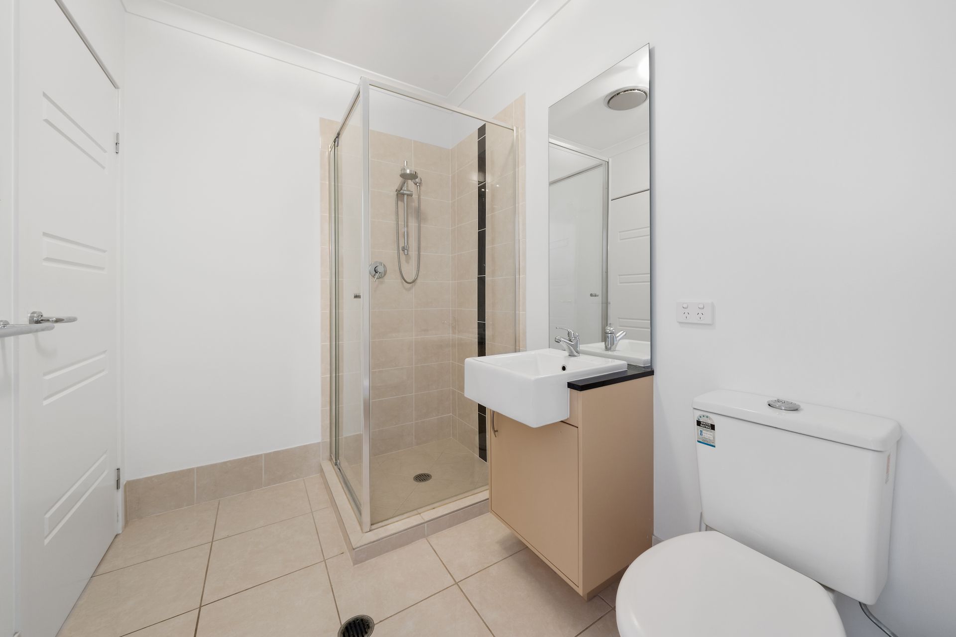 - Bathroom three is a 2-way bathroom, conveniently located on the ground floor with access from both the main hallway and fifth bedroom. Features include tiled flooring, shower, single vanity and toilet.