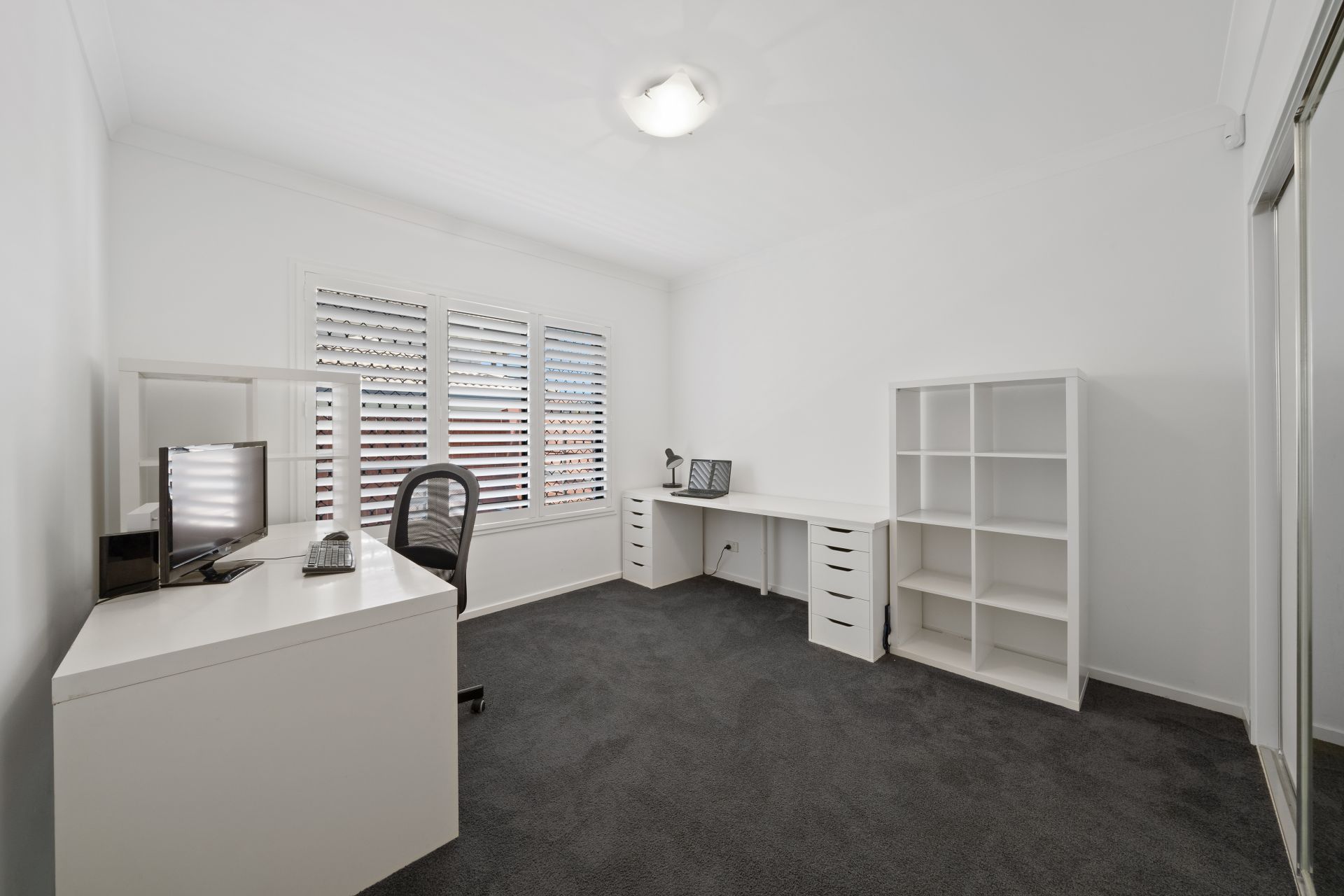 - Bedroom five is located on the ground floor and makes the perfect space for potential dual living, guest room or home office. It features carpeted flooring, ducted air-conditioning, built-in robe with mirrored doors, plantation shutters and convenient access to the home's third bathroom.