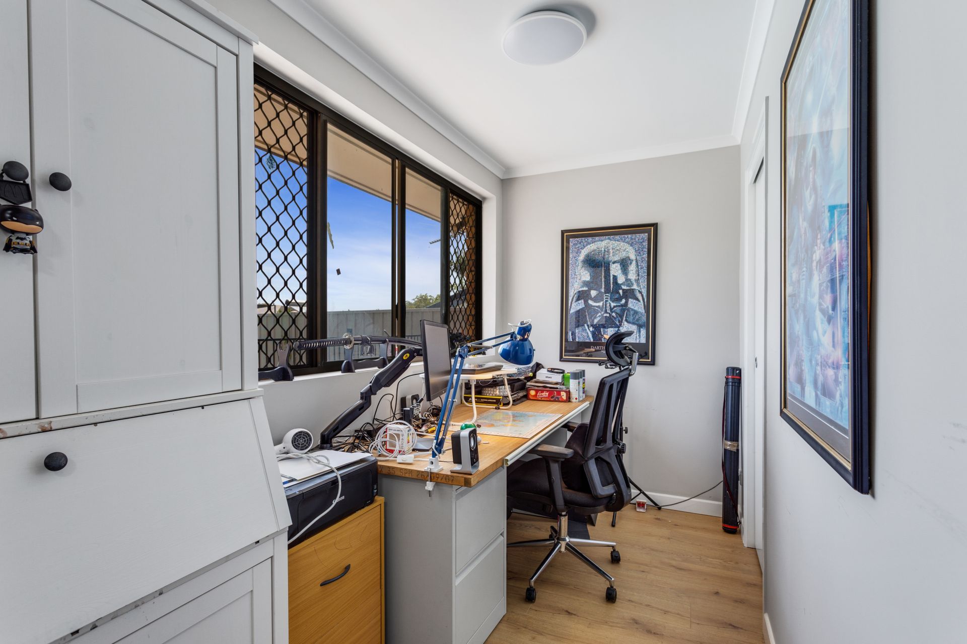 > The two large and separate lounge areas are perfect for people wanting a separate space for a kids playroom; featuring ducted air-conditioning, timber floorboards, ceiling fans, LED down-lights, roll down blinds, combination of security and fly screens and with the main lounge giving access to the private study.