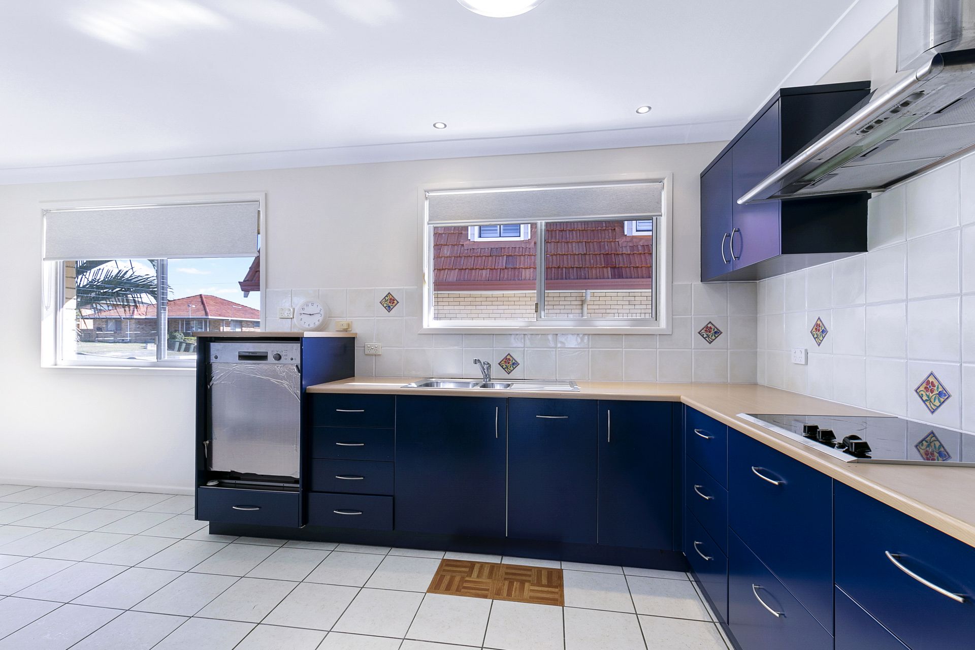 > Tiled flooring and splashback