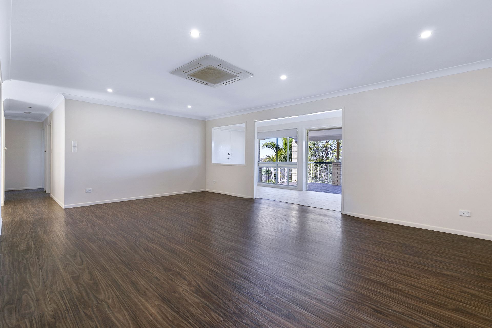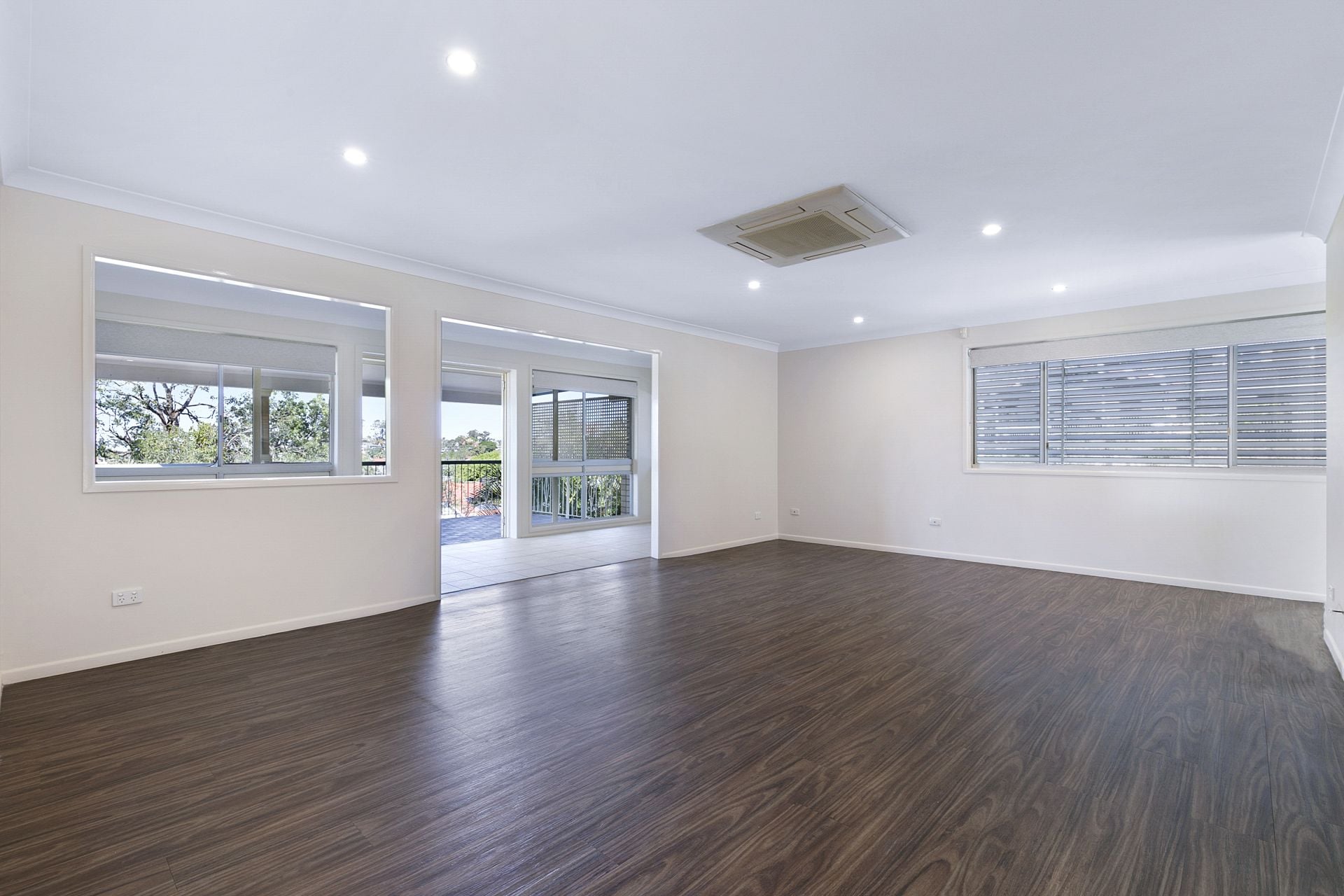 - Heading toward the upper level you are greeted with a versatile open plan and light-filled living and dining area with recently updated flooring, Mitsubishi Electric air conditioning and this space flows effortlessly out towards the sunroom and balcony as well as the large kitchen.