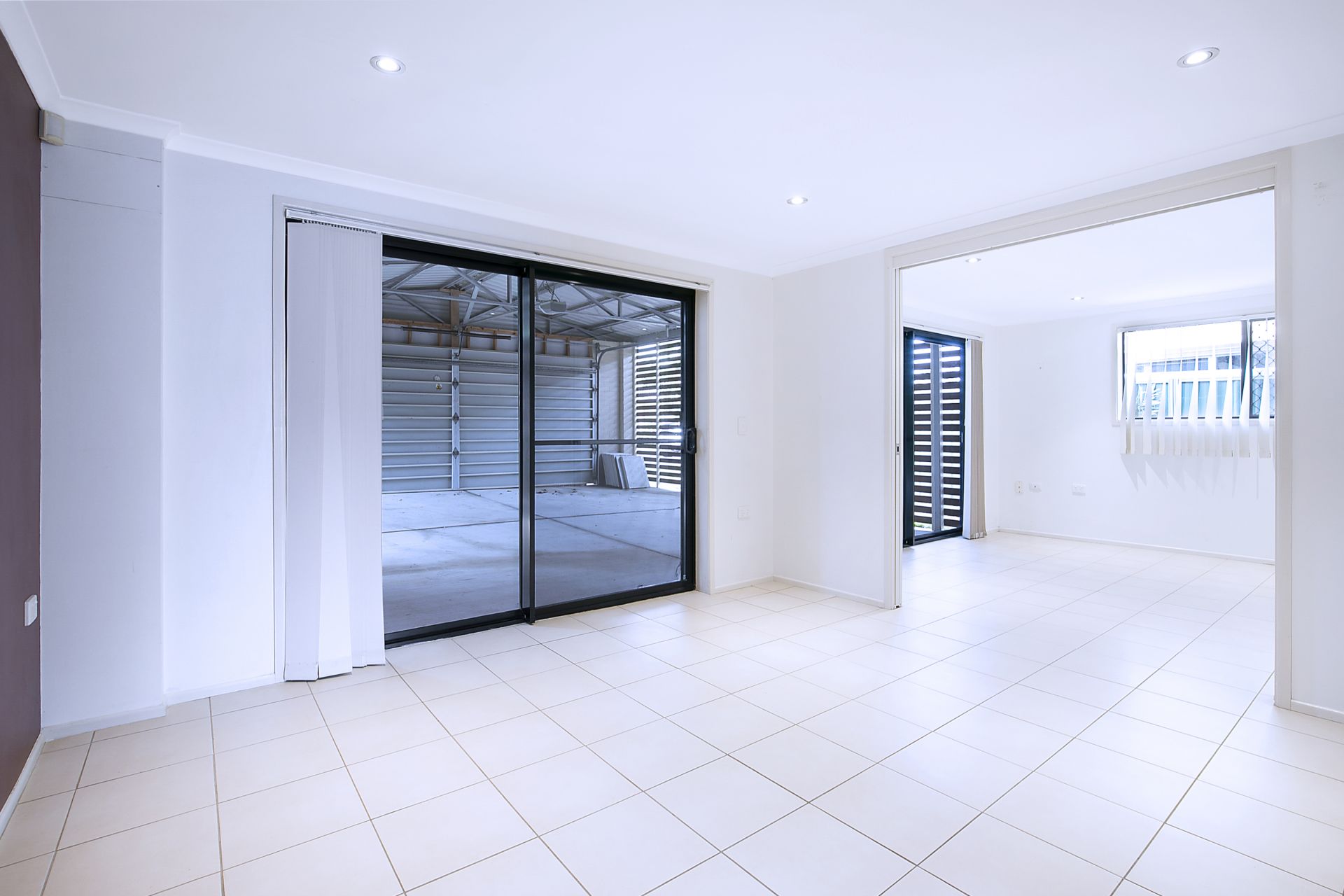 > Bedroom 2 features, LED down-lighting, ceiling fans, security screens, roman curtains and carpet flooring