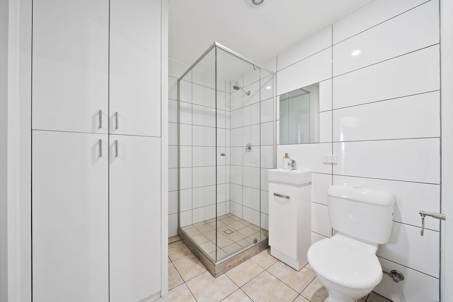 - Bathroom two is conveniently located downstairs and features shower, single vanity, floor-to-ceiling tiles and toilet.
