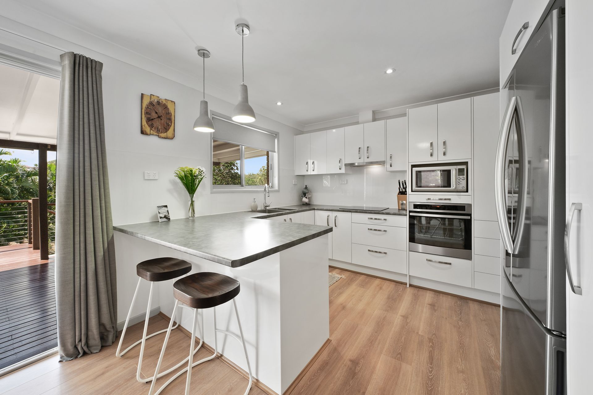 The home's renovated kitchen enjoys great views out over the rear entertainers deck and shares an open plan with the home's dining room. Features include: