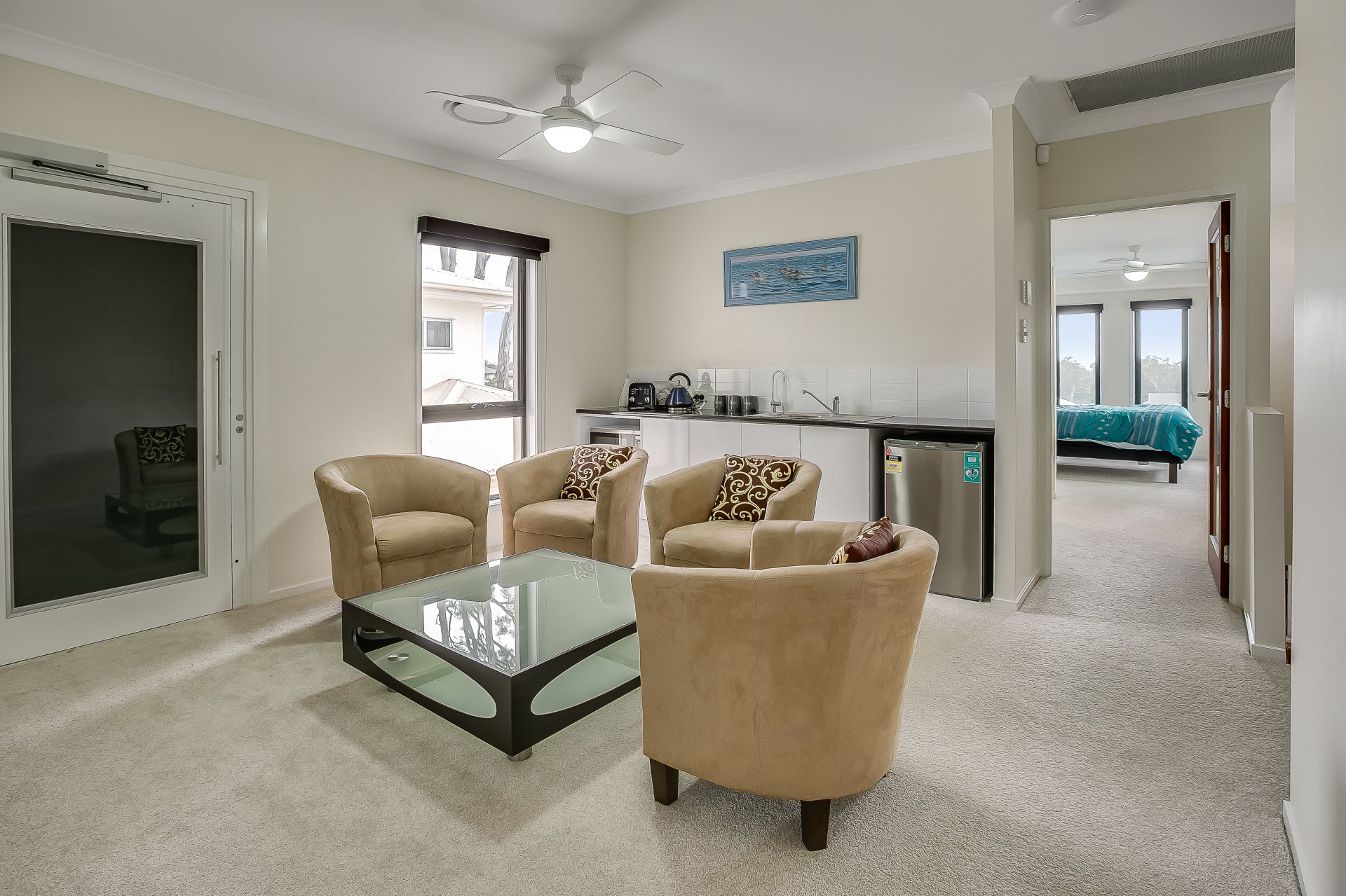 > Upstairs living with own kitchenette is central to 4 of the bedrooms and will be perfect for separate entertaining, offering carpeted flooring, ceiling fan/light combo and black block out blinds plus lift from downstairs living.