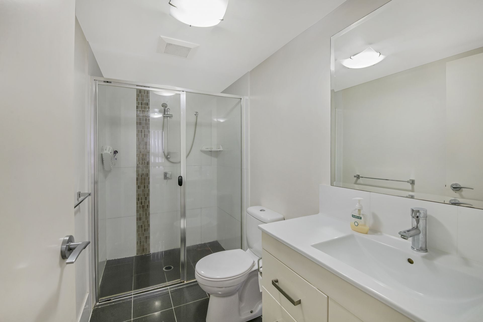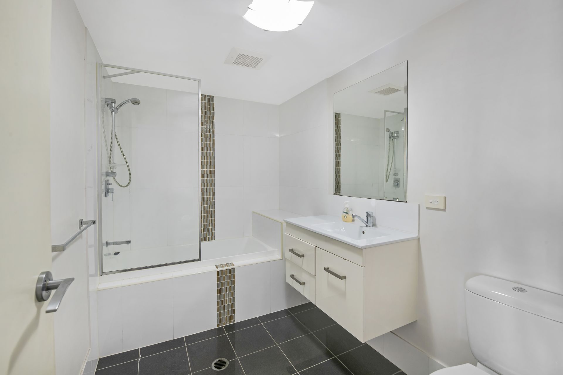 - Bathroom two is the ensuite to the master bedroom and features tiled flooring, shower with detachable showerhead, single vanity and toilet.