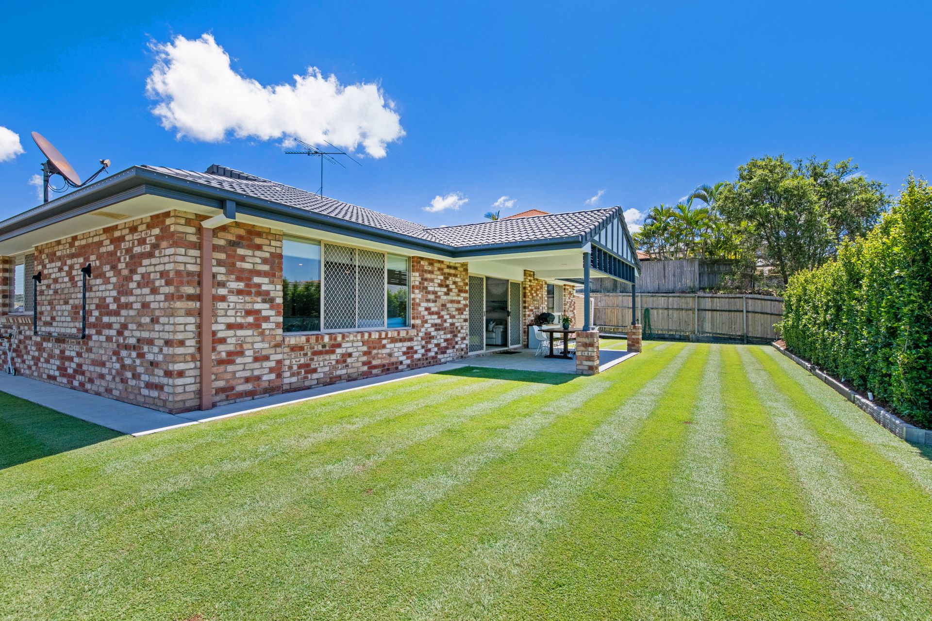 - Outdoor entertaining you will love. The private entertaining area off the homes lounge is spacious, private and open. Enjoying the breeze from its elevated position, it is the perfect place to entertain guests or just to sit and enjoy the serenity of the local area and admire the immaculately manicured lawn. It features outdoor power and lights.