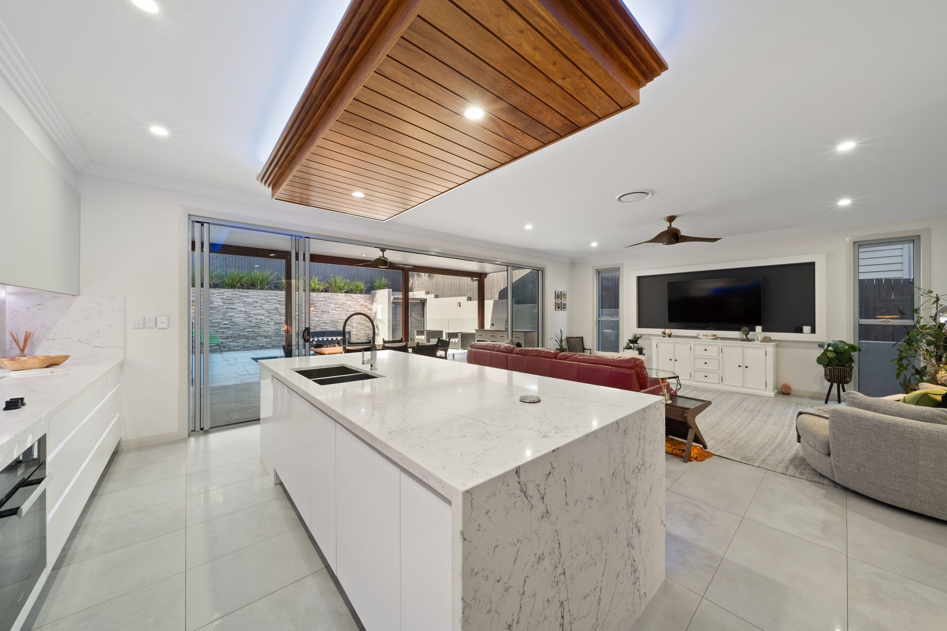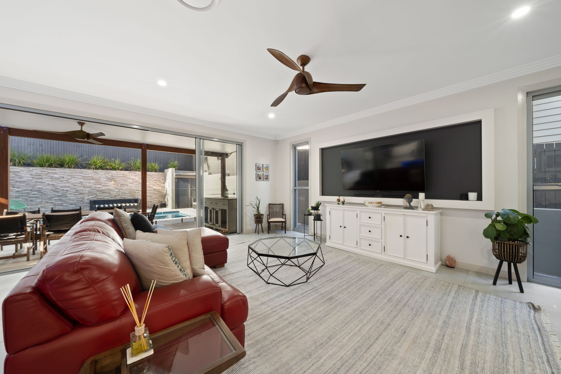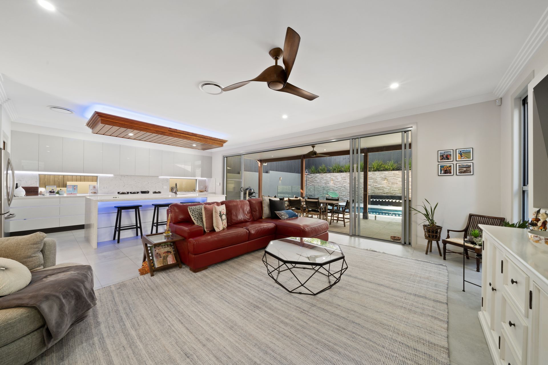 > Prime position overlooking the living, dining and outdoor entertaining spaces
