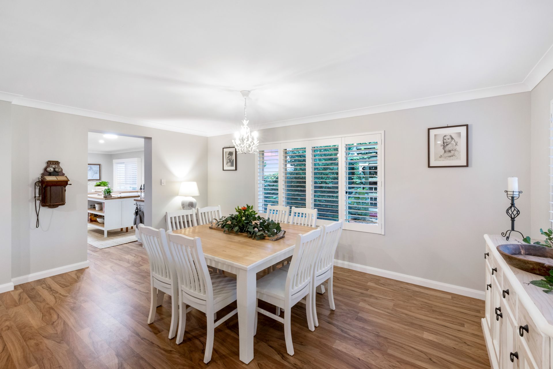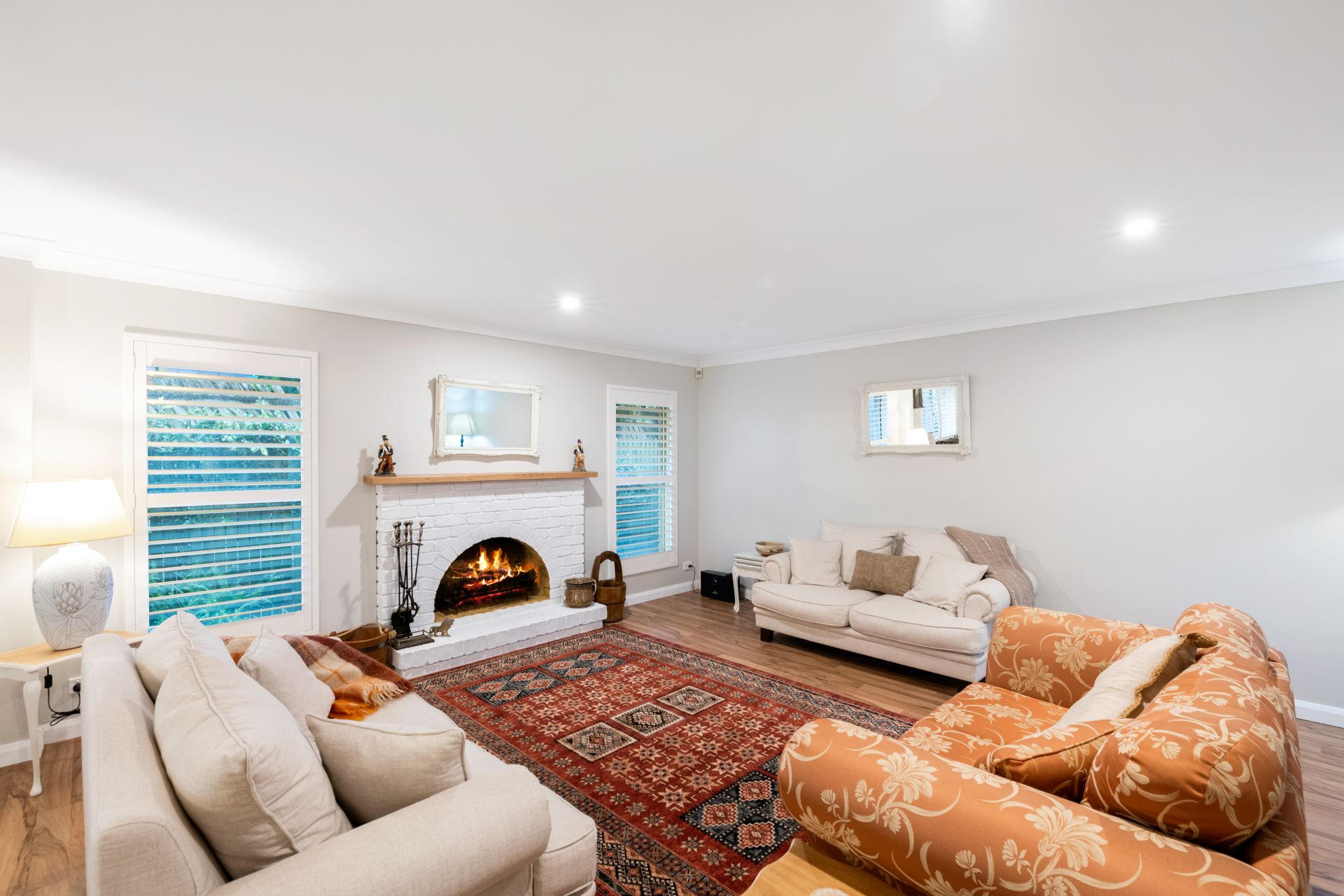 - The stunning formal lounge and dining room share a large combined space and features 2.5m high ceilings, timber flooring, beautiful brickwork wood burning fireplace and plantation shutters.