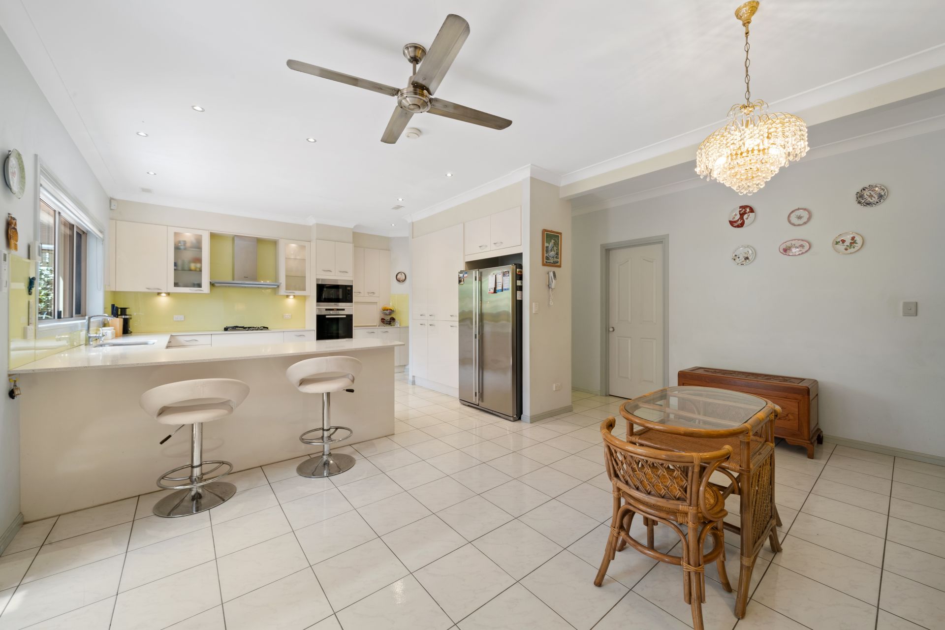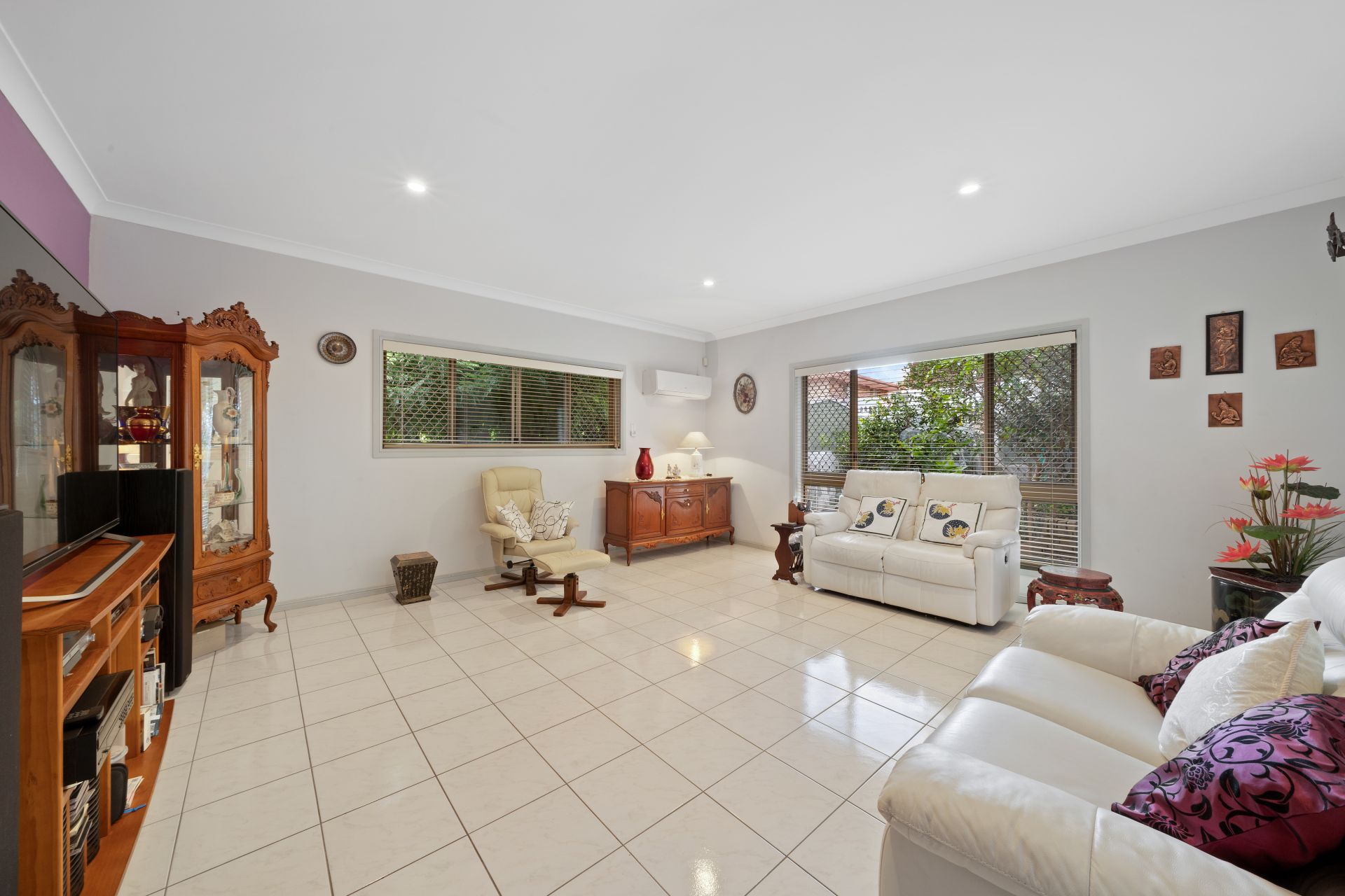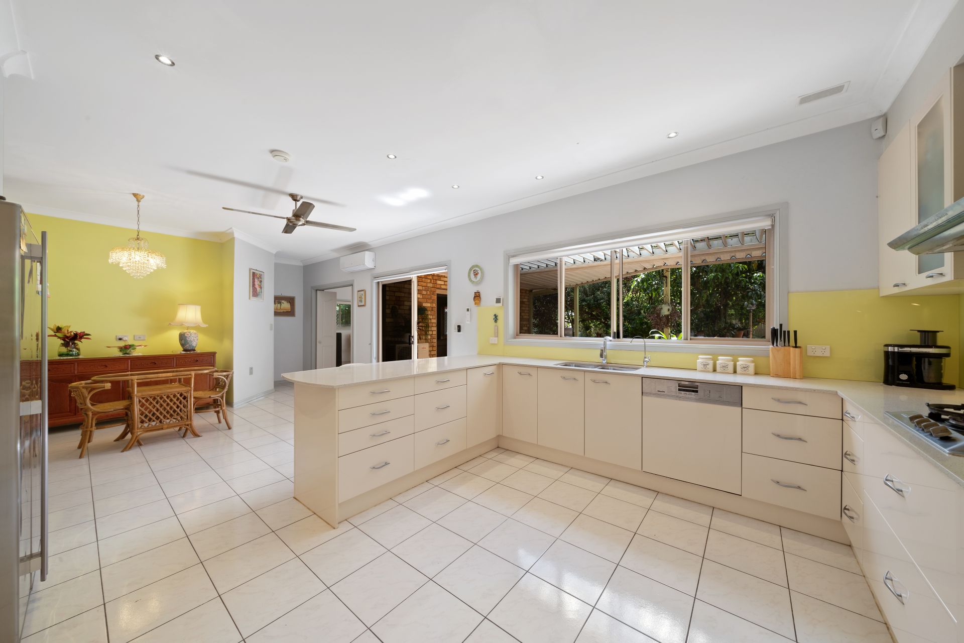 > The open plan main living/dining areas located at the back of the home flow effortlessly to the kitchen and through to the outdoor entertaining area and tranquil garden. This light-filled space adds to the expansive nature of the home, featuring Fujitsu split-system air-conditioning, dimmable down-lights, tile flooring, combination of roller + venetian blinds, sliding windows and large glass sliding doors.