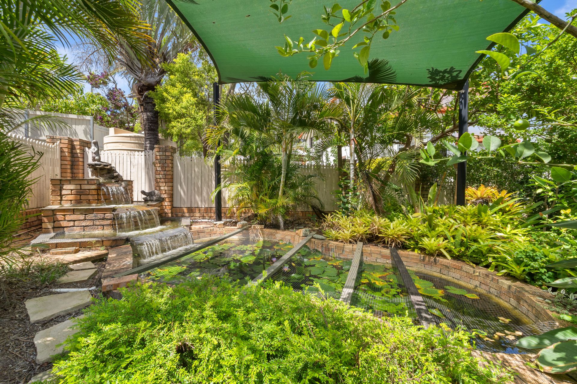 - Outdoor entertaining will be a breeze thanks to the large outdoor patio, boasting a VERGOLA louvre roof system with automatic weather sensor, outdoor tile flooring, outdoor lighting and gated balcony balustrading with a tile/stepping stone pathway leading up through the tranquil gardens to a fish pond with built-in water feature, encapsulating everything there is to love about our Queensland lifestyle. The gardens also boast a variety of edible trees that include mangoes, pomegranates, feijoas, mandarins, guavas, lemons, limes, bananas and curry leaves.