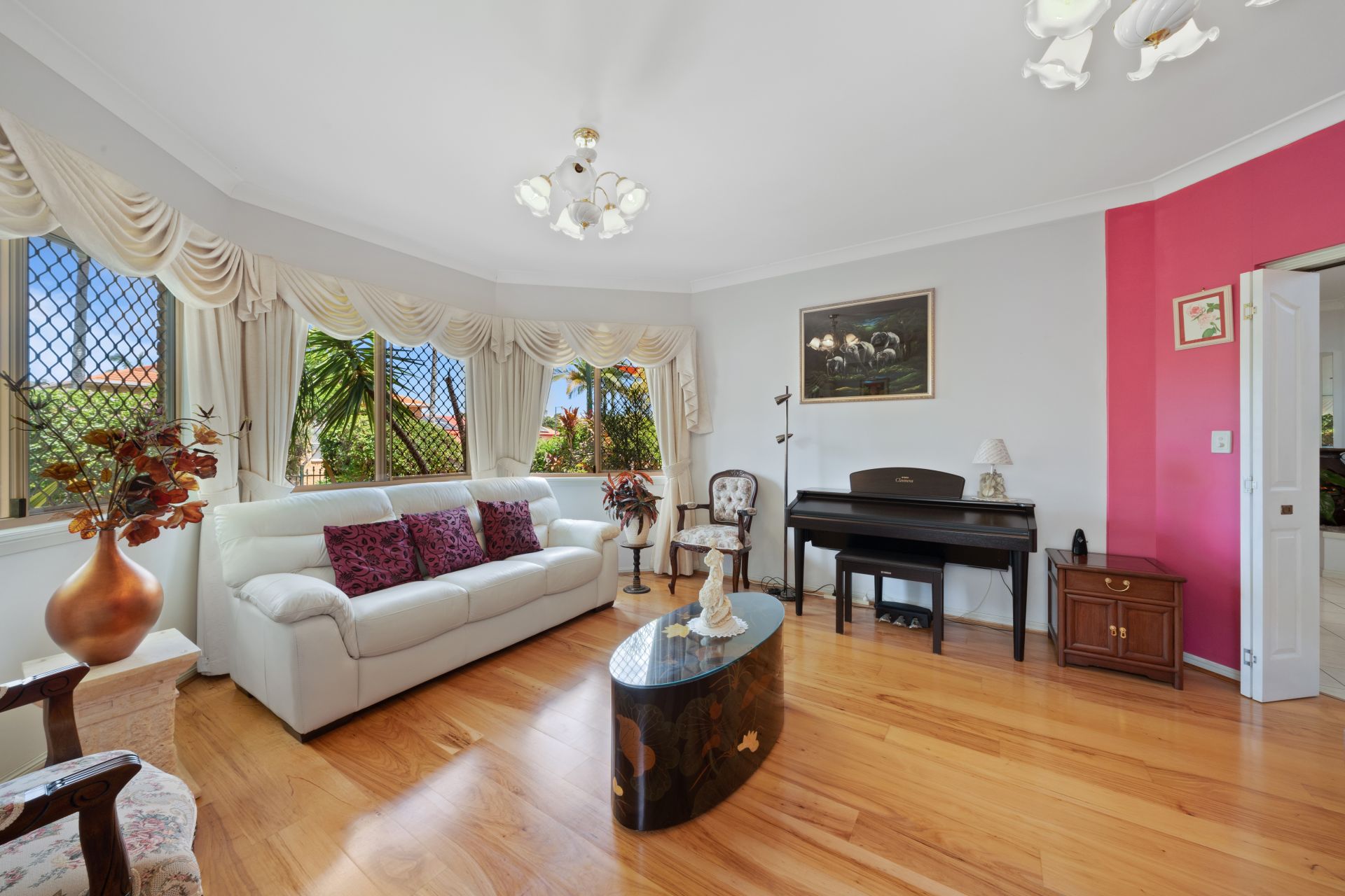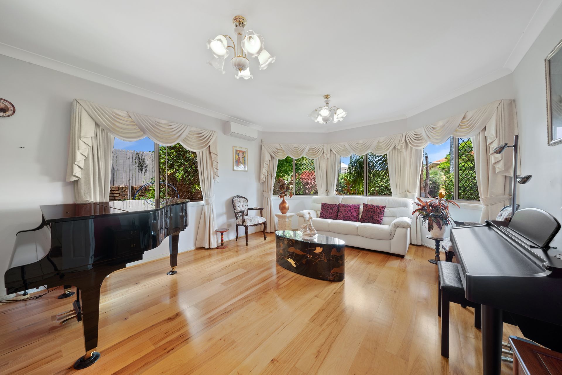 > Located at the front of the property is the formal dining/sitting room bathed in natural light thanks to the bay and sliding windows. This space also features engineered timber flooring, pendant lighting, Fujitsu split-system air conditioning, double bifold doors and curtains.