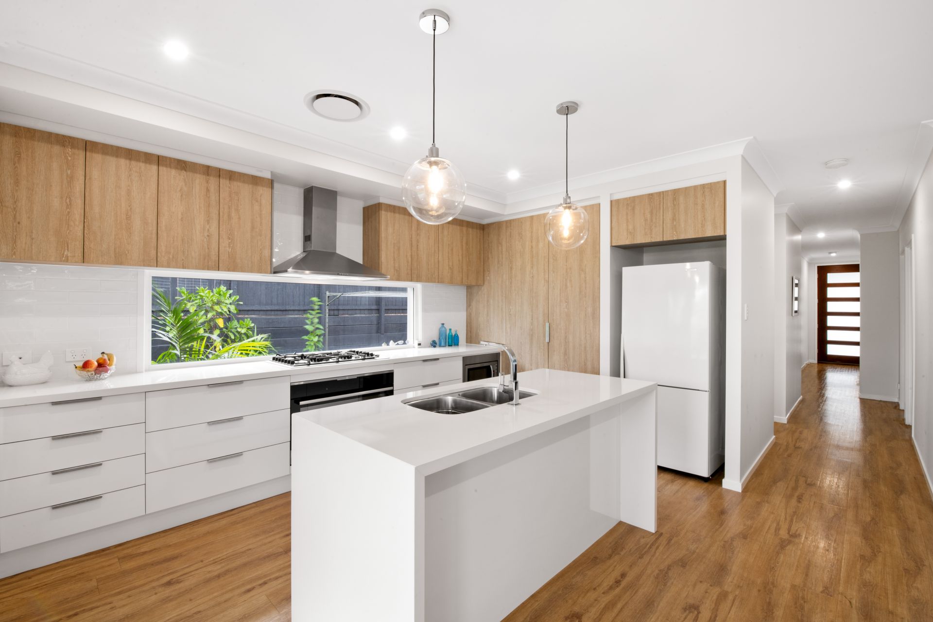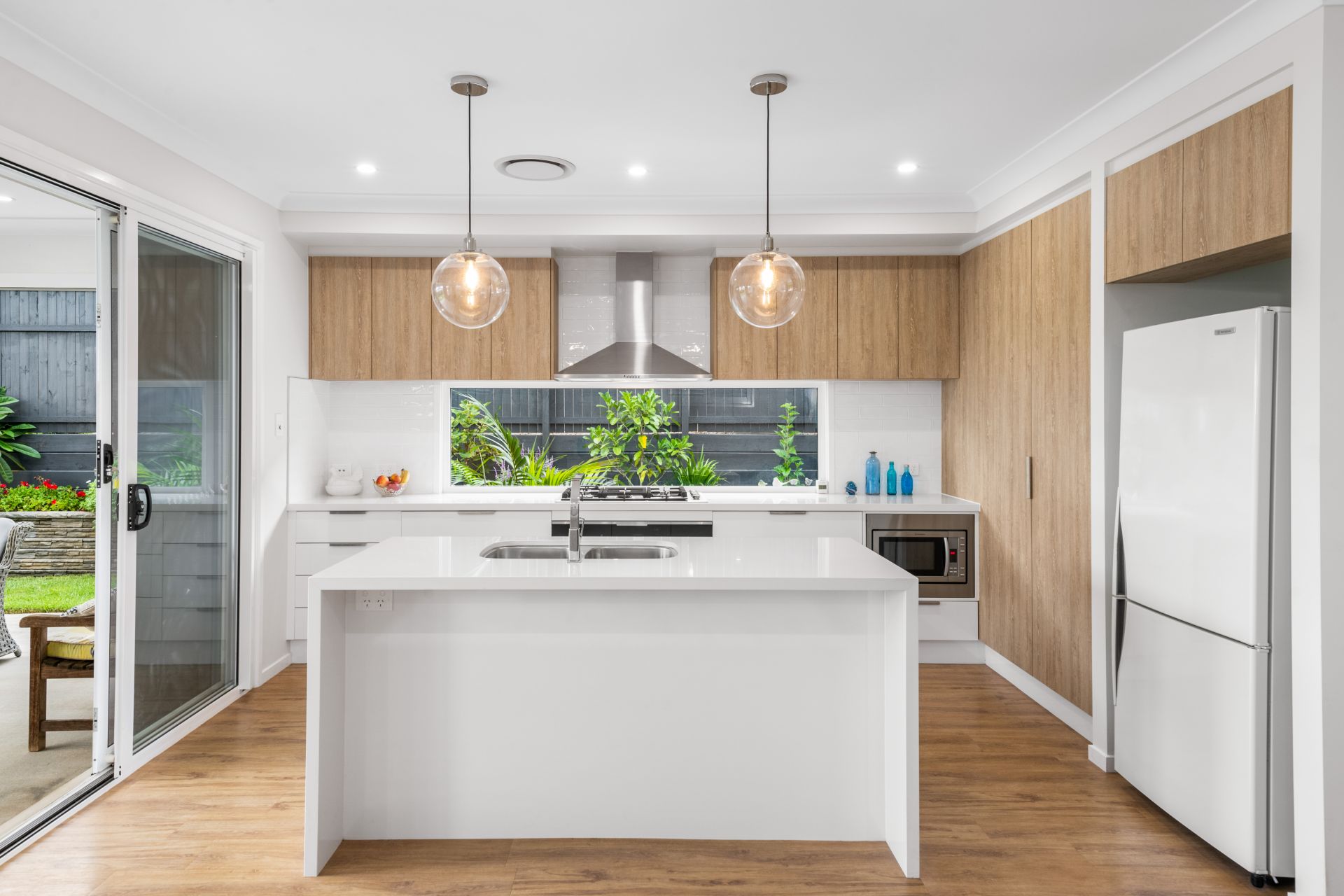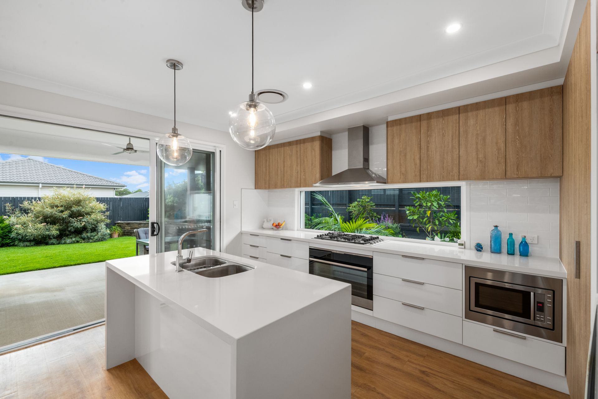 The beautiful contemporary kitchen shares a large open plan with the home's living and dining areas. With an abundance of natural light flooding in through the wide window, it features: