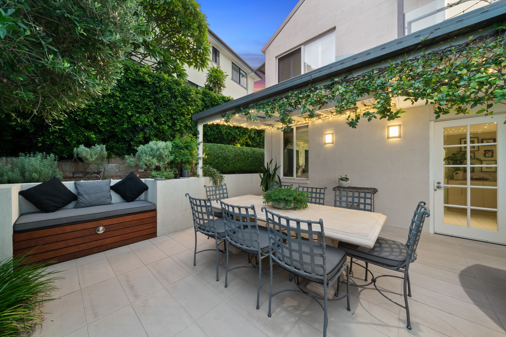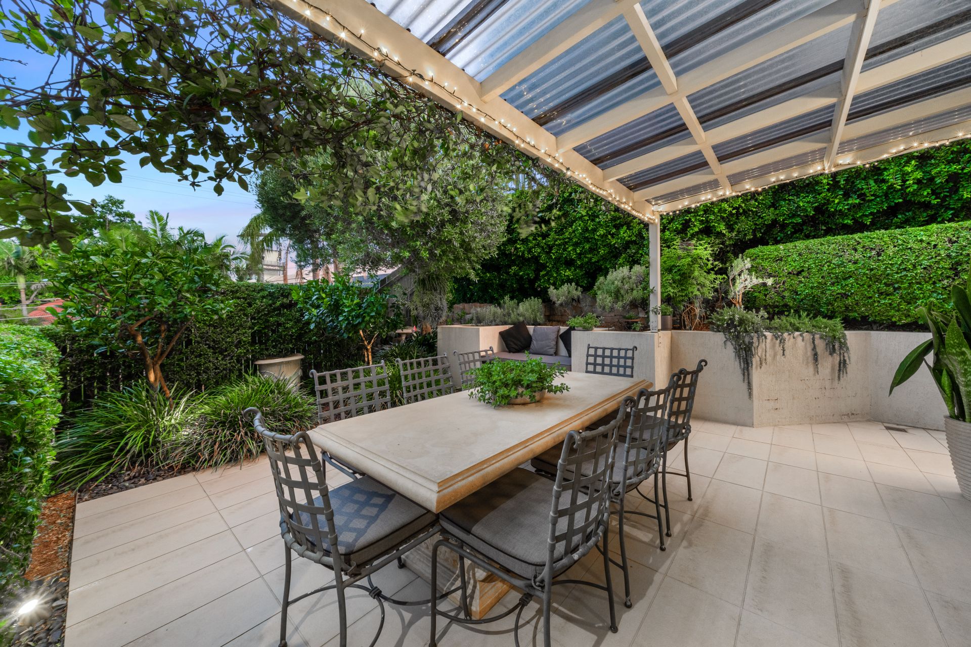 > The covered outdoor entertaining area encapsulates everything there is to love about our Queensland lifestyle boasting a semi covered courtyard featuring outdoor power points, pull out clothesline, built-in hidden storage seat and outdoor lighting, making it the perfect space to relax and unwind with family and friends.