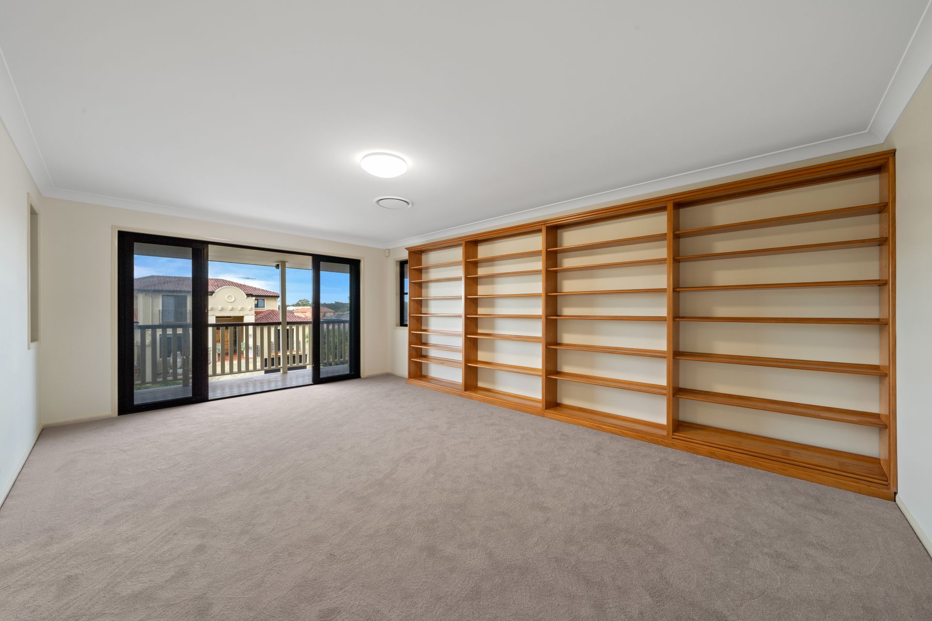 - The formal lounge is a great sized room featuring carpeted flooring, built-in book shelves, ducted air-conditioning and access to the front deck.
