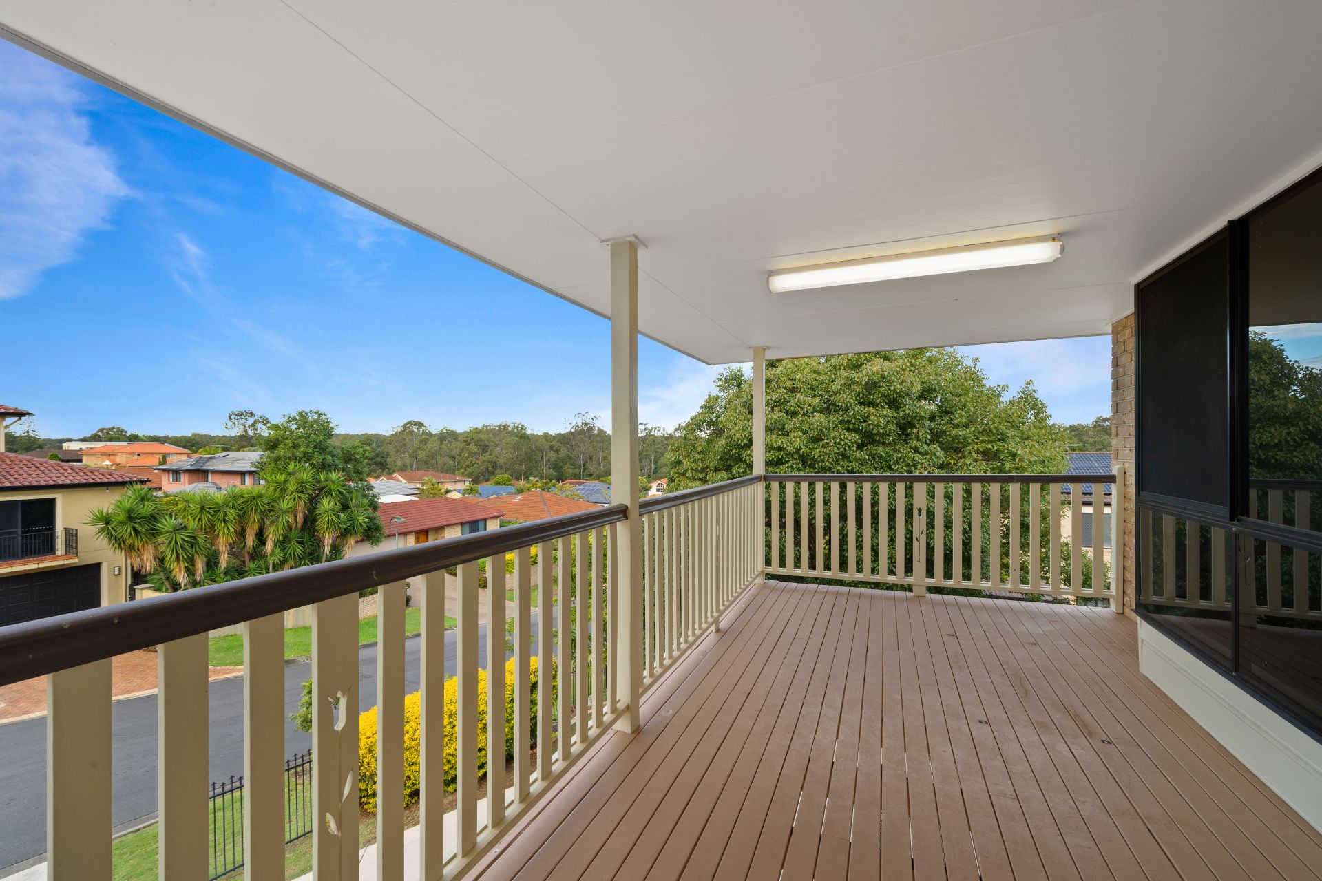 - The covered front deck is the most amazing place to enjoy the glorious views out over the nearby reserve from the homes elevated position.