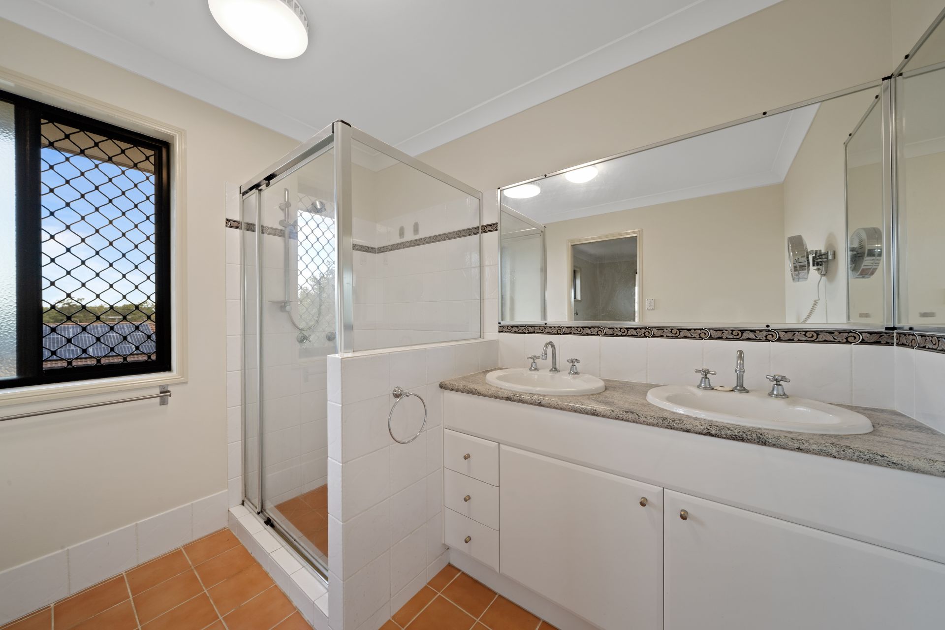 - Bathroom two is the ensuite to the master bedroom. This spacious bathroom features tiled flooring, shower, double his & hers vanity and toilet.