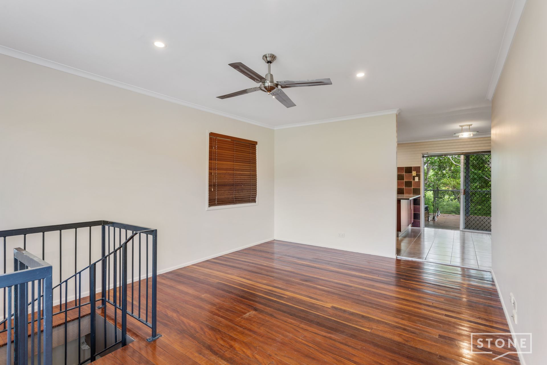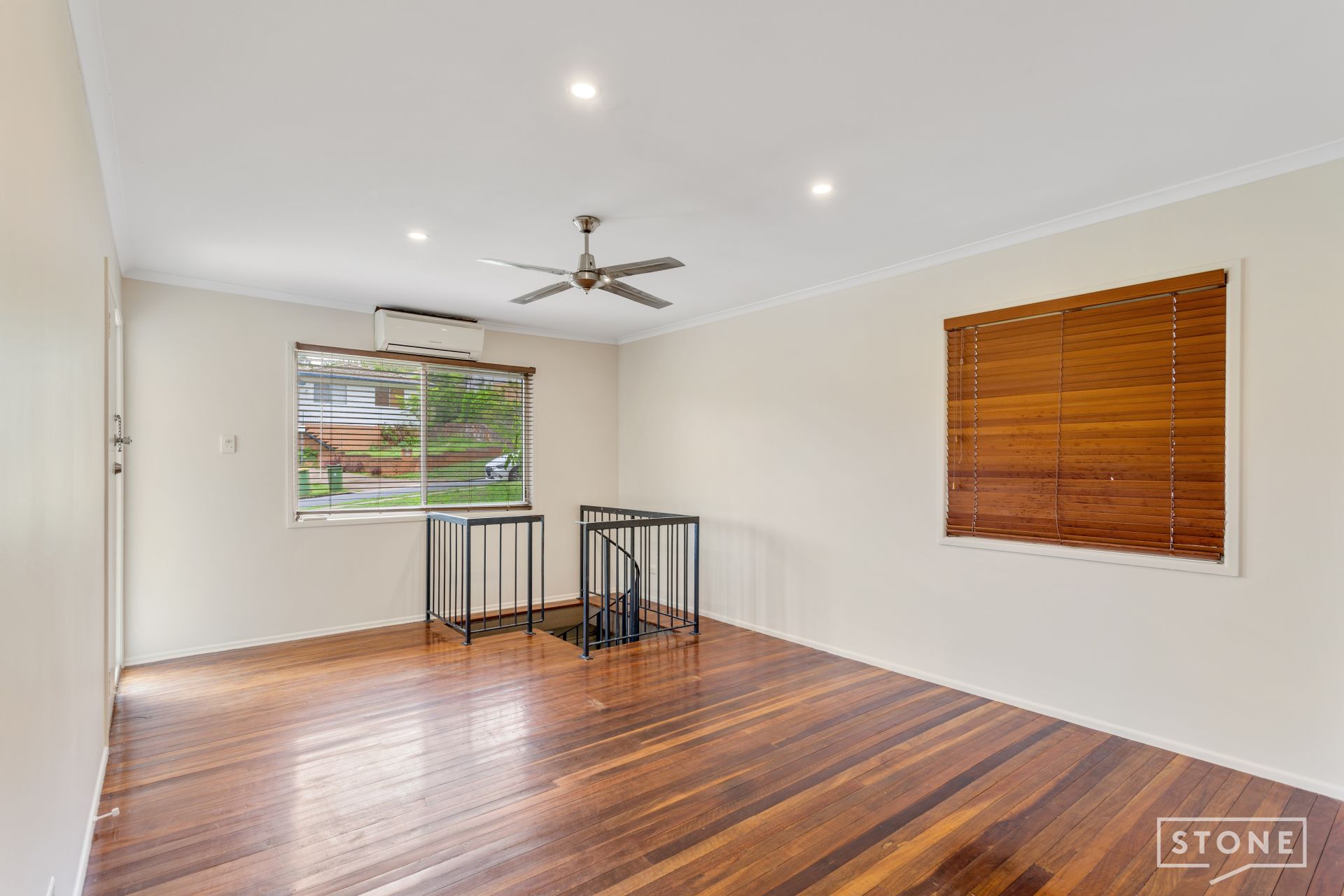 outdoor entertaining area. Featuring rich timber flooring, split system air-conditioning, ceiling fan, venetian blinds, and access to the front landing offers a seamless flow of living space