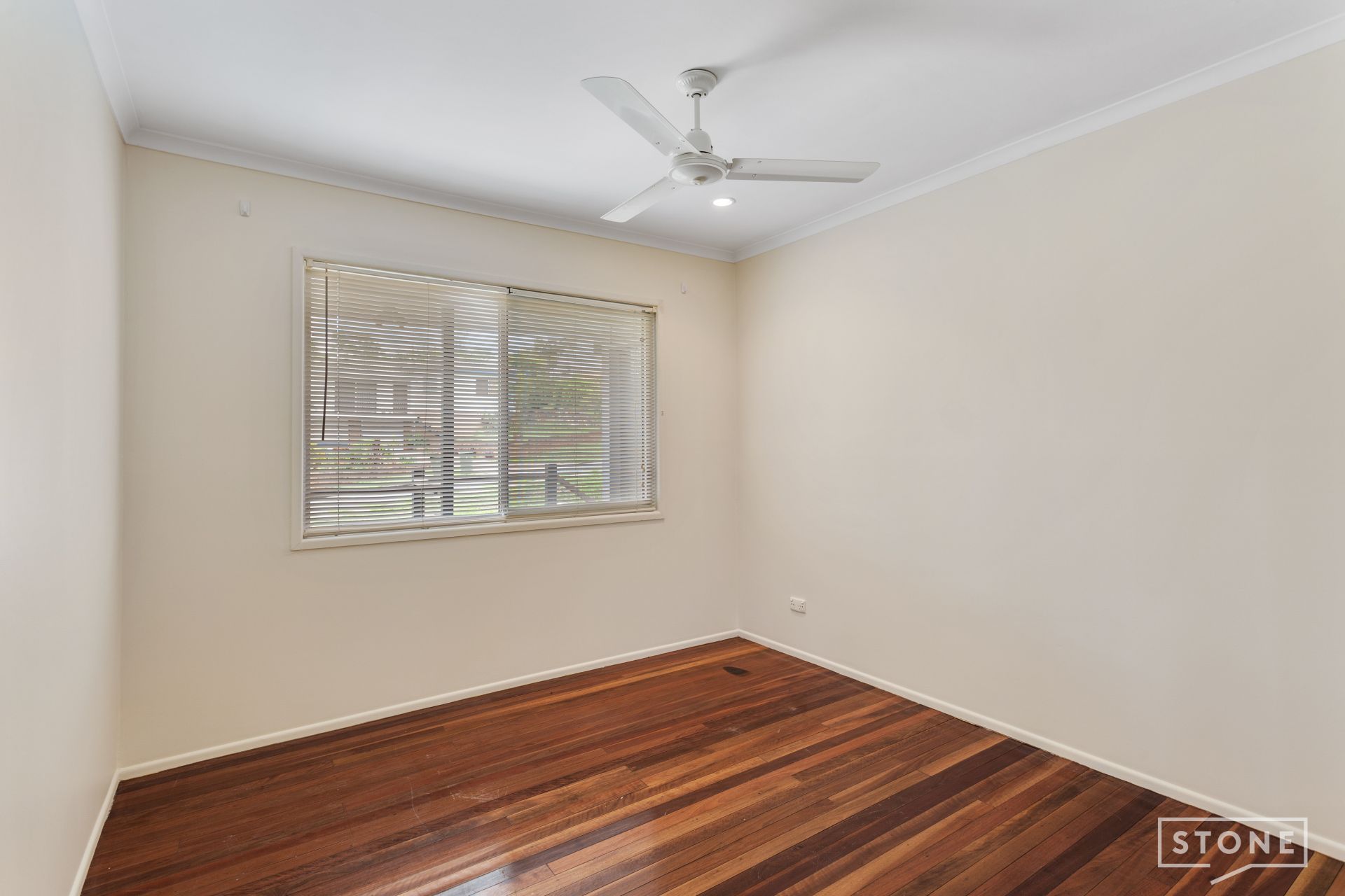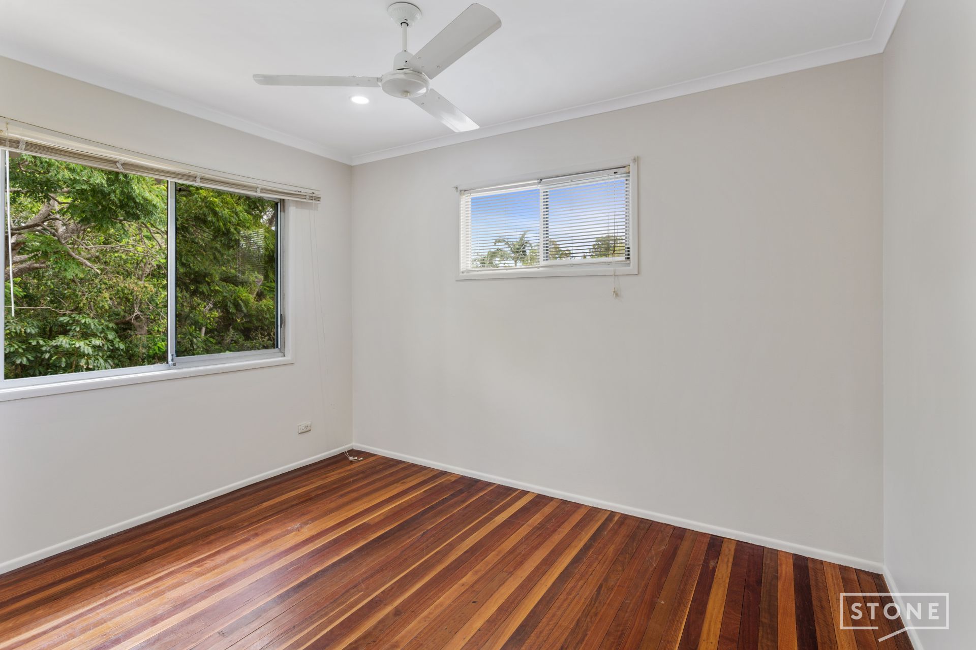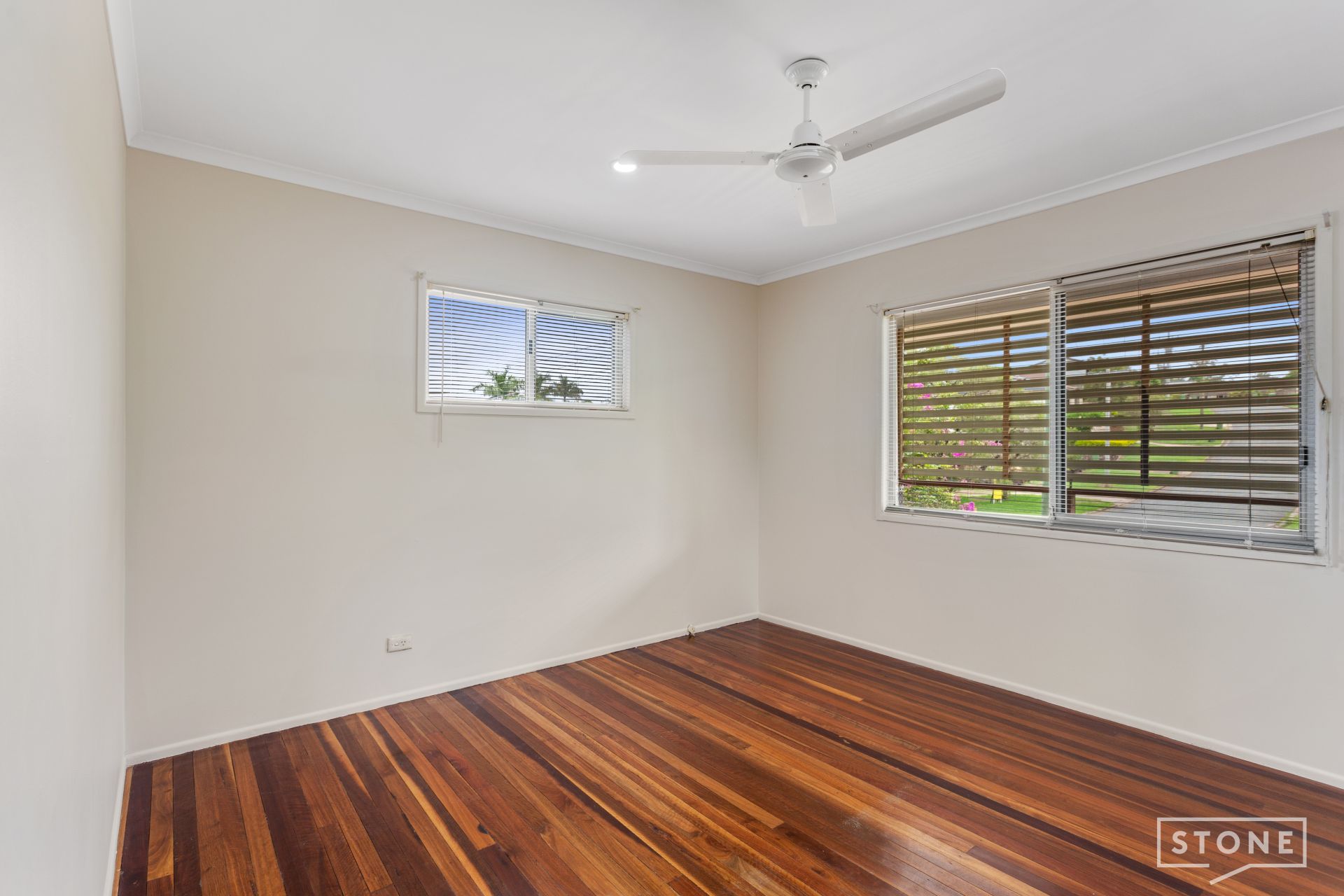 > Bedrooms 2 & 3 features ceiling fan, rich wood flooring, LED down-lighting, Venetian blinds, security mesh with sliding windows