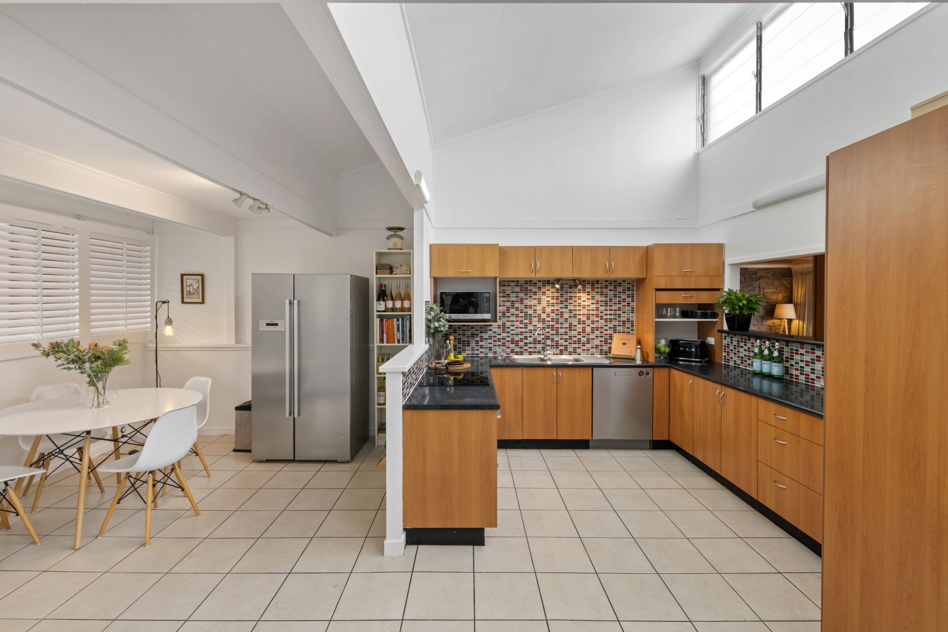 - Meals area also shares this great open space with the homes kitchen and family room and features tiled flooring, plantation shutters and access to the pool area.
