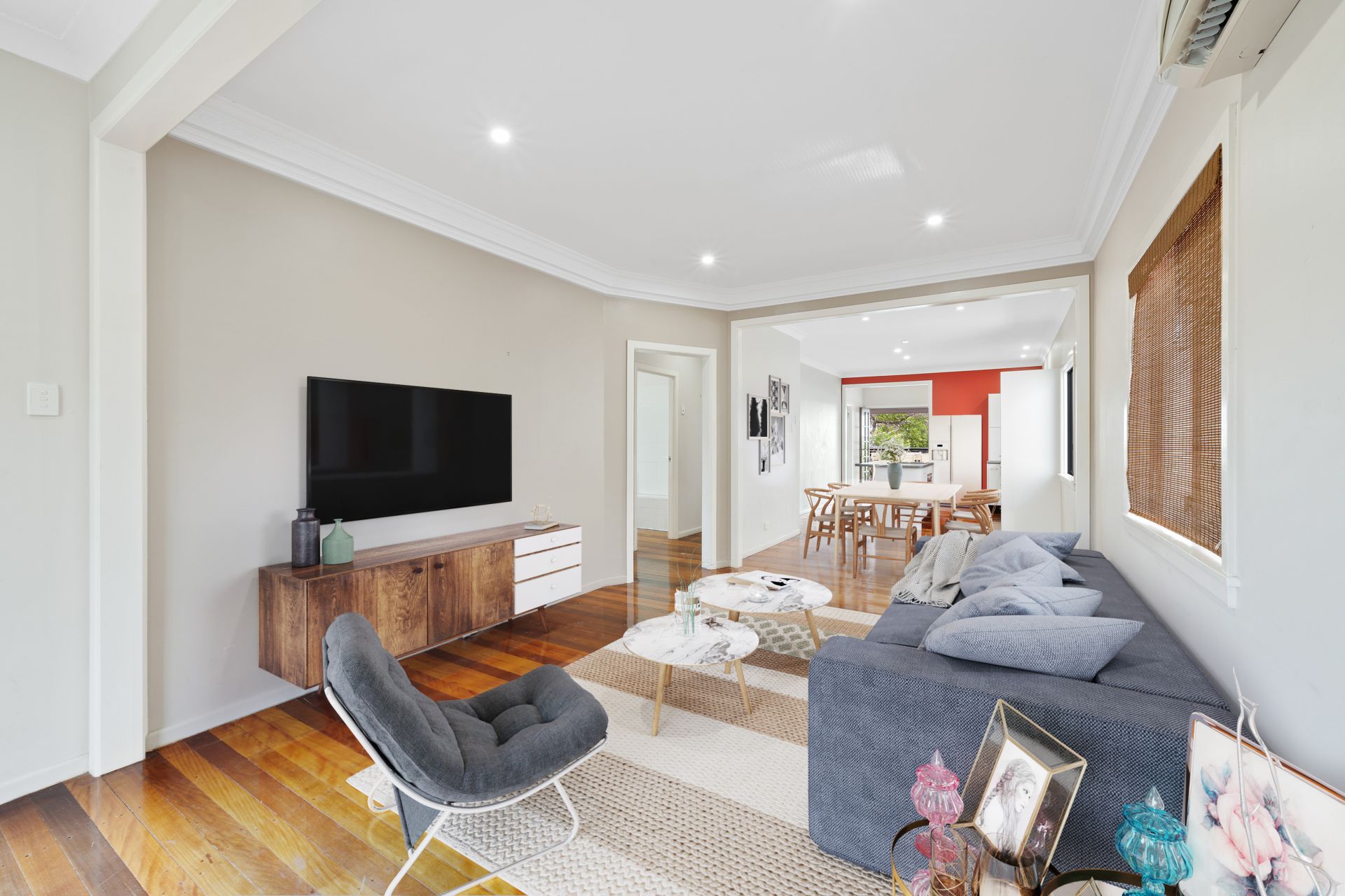 - The moment you walk into the air-conditioned light-filled sunroom you'll notice just how large the open plan living and dining areas are along with their connection to the outdoor entertaining deck.